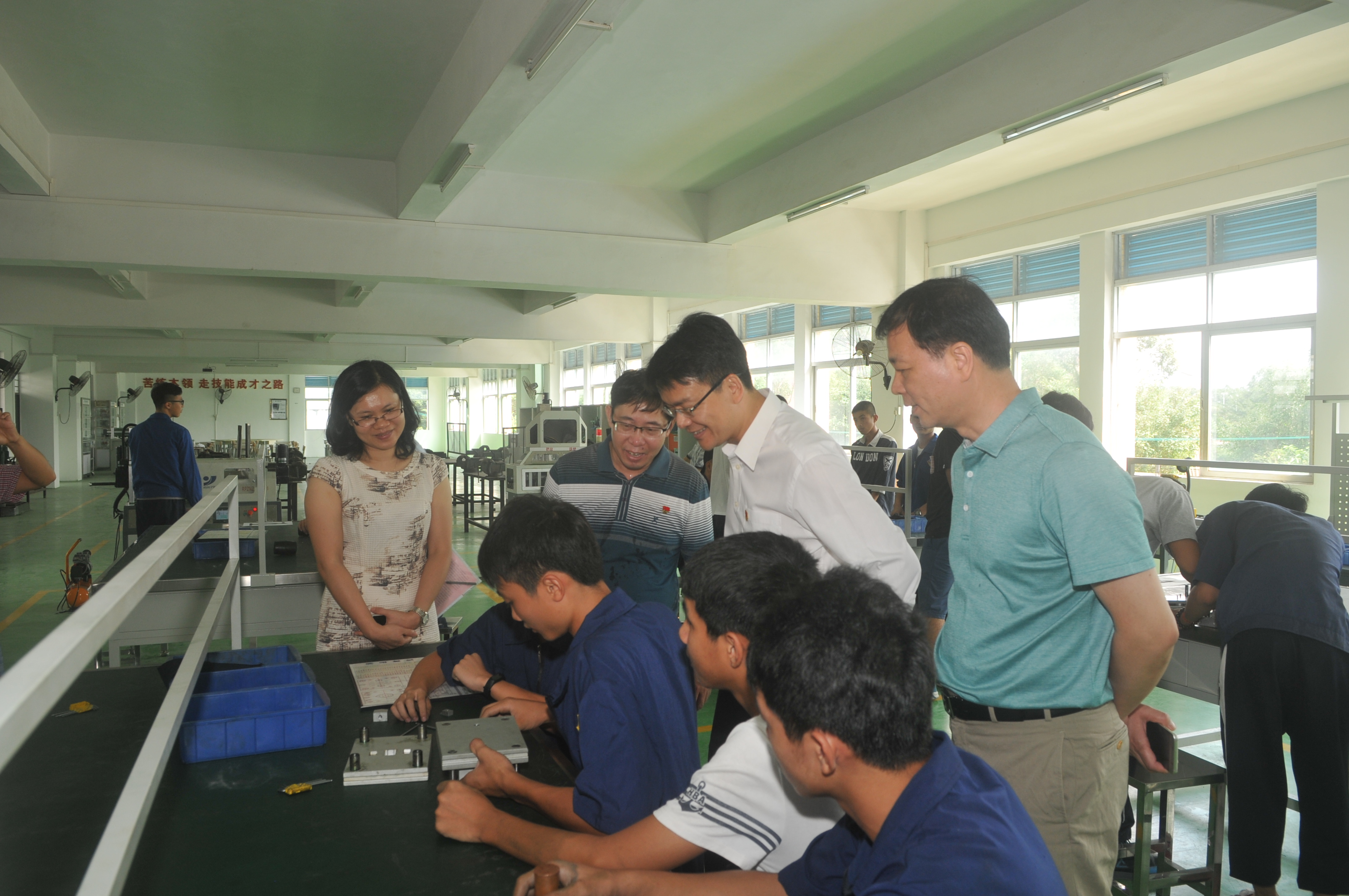 龐市長一行先到吳漢良理工學校調研,期間吳漢良伉儷及兒子也回校陪同,并一起視察了學校的校園及辦學實訓場室。接著,龐市長一行再到機電學校調研,深入學校實訓車間察看學生實訓操作實況。龐市長所到每一所學校,均與學校行政領導及部分教師召開座談會,了解學?;巨k學情況,聽取校長辦學情況匯報,關心學校發(fā)展狀況。最后,龐市長對我市中職教育所取得的成績給予肯定,并指示我市中職教育發(fā)展要著力做好“貼近市場、校企合作、服務產(chǎn)業(yè)、立足地方”十六字方針,不斷優(yōu)化中職教育發(fā)展。