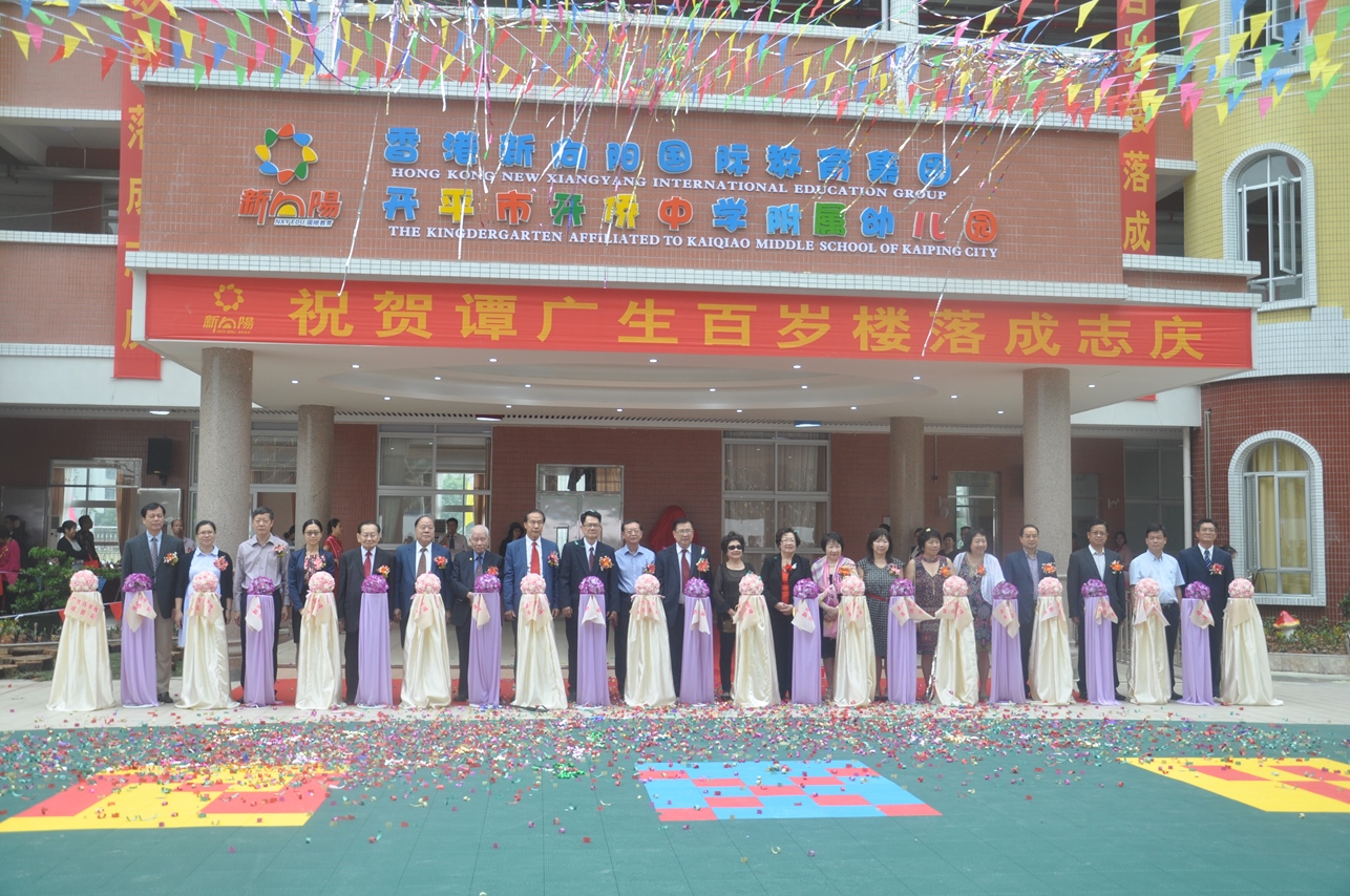 11月15日,開僑中學(xué)舉行譚廣生百歲樓落成慶典。百歲樓捐資者譚廣生先生的兒子、全美英端商工總會總理元老、三藩市華埠商人協(xié)會副會長譚瑞璋先生及其親屬、開平市領(lǐng)導(dǎo)梁民躍、顏海娜、陳百濃、黃力奔,開平市文化促進(jìn)會會長譚思哲、開僑中學(xué)校董會副董事長張文瀾先生伉儷、開僑校友以及社會各界人士齊聚開僑,共享百歲樓落成的喜悅。
