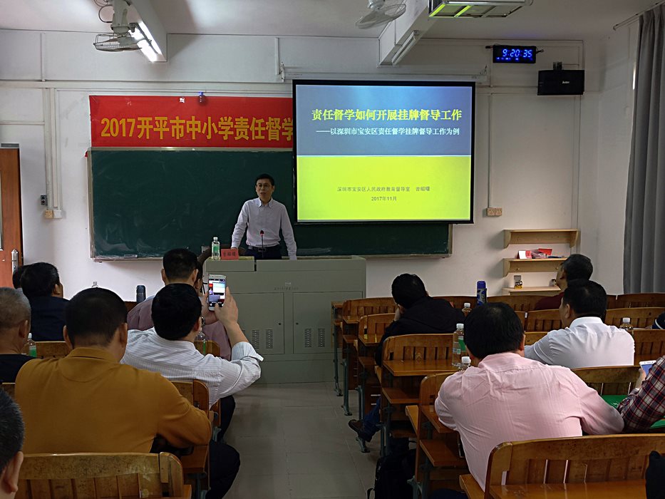 2017年11月16日至11月18日,開平市教育局組織46位督學(xué)到肇慶學(xué)院舉辦責(zé)任督學(xué)掛牌督導(dǎo)創(chuàng)新培訓(xùn)班。開平市教育局副局長(zhǎng)雷惠強(qiáng)、教育工會(huì)主席甄新強(qiáng)、督導(dǎo)室主任謝素彥參加此次培訓(xùn)學(xué)習(xí)。