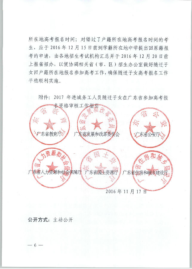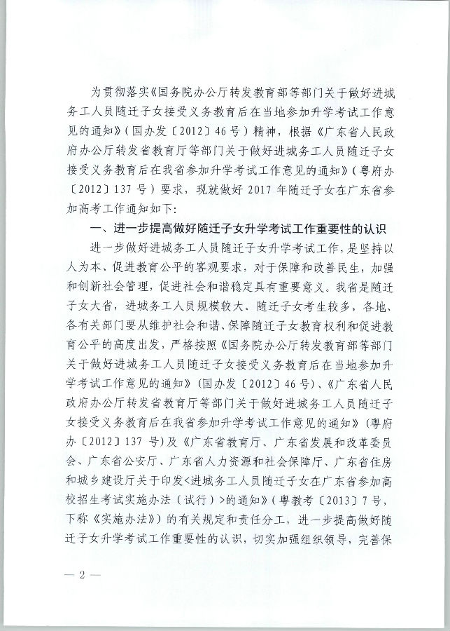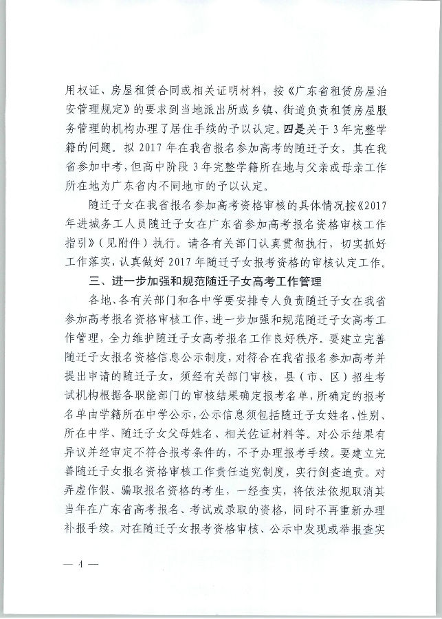 關(guān)于做好2017年進(jìn)城務(wù)工人員隨遷子女在廣東省參加高考有關(guān)工作的通知