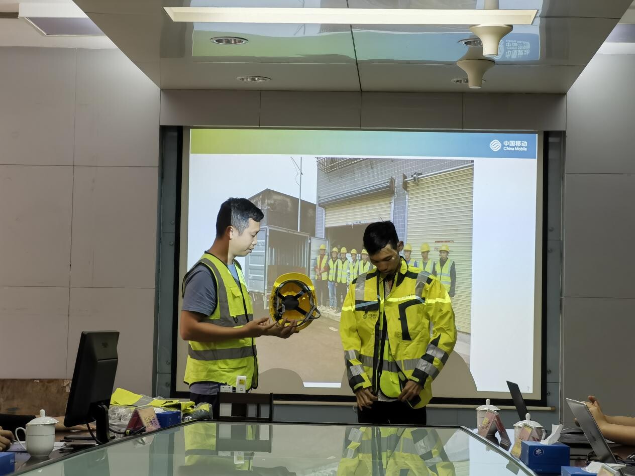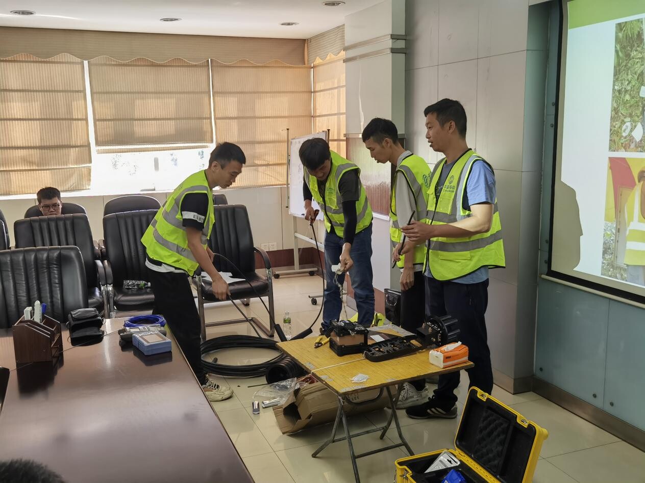 演練模擬場景設(shè)置為受強(qiáng)臺風(fēng)影響,我市水庫基站受到破壞,造成通信網(wǎng)絡(luò)事故,同時三防無線電頻率受到干擾。演練設(shè)置安全著裝規(guī)范展示、現(xiàn)場熔纖實(shí)操演練,并針對應(yīng)急處置情景全流程中指揮調(diào)度、物資保障、安全防范、技術(shù)處理等多個環(huán)節(jié),模擬現(xiàn)場情景設(shè)置問題,以問答對抗的形式還原真實(shí)場景,仿真應(yīng)對各類應(yīng)急處置細(xì)節(jié)。