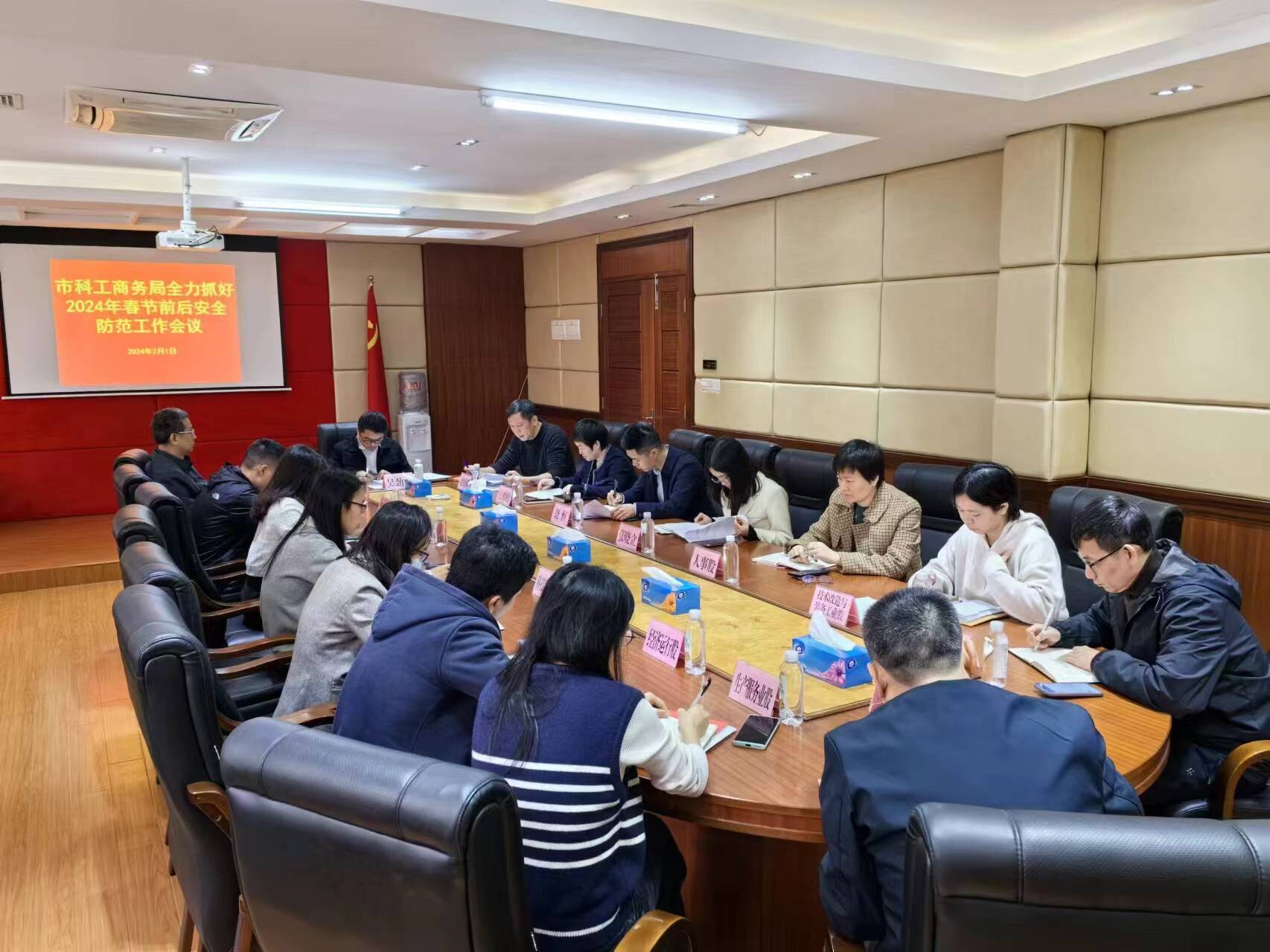 為確保春節(jié)和全國兩會期間我市科技、工信、商務(wù)領(lǐng)域安全生產(chǎn)形勢穩(wěn)定,2月1日上午,開平市科工商務(wù)局召開黨組擴(kuò)大會議,傳達(dá)貫徹習(xí)近平總書記近期關(guān)于安全生產(chǎn)的重要指示批示精神,認(rèn)真貫徹落實黨中央、國務(wù)院關(guān)于安全生產(chǎn)的決策部署以及各級工作要求,研究和布置春節(jié)前后和2024年各項安全防范工作,科工商務(wù)局全體班子成員及各股室負(fù)責(zé)人參加了會議。