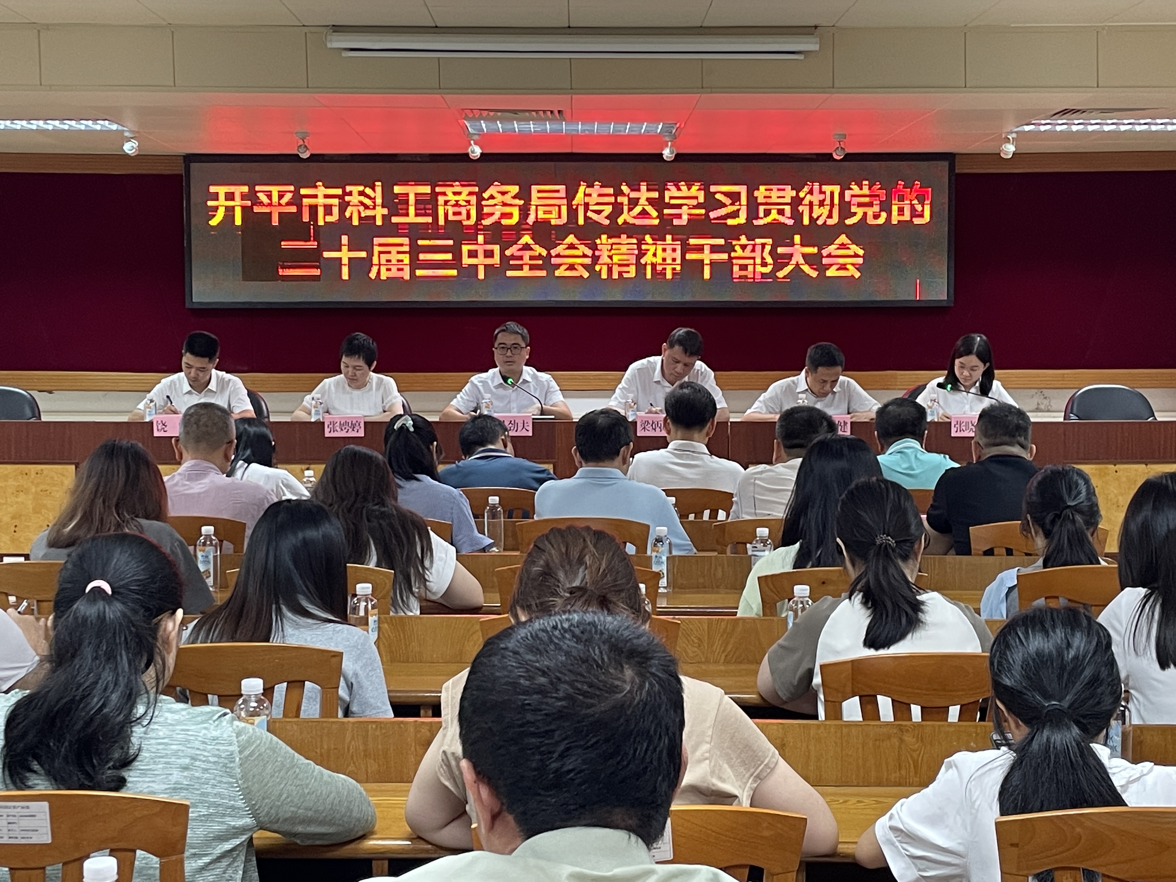7月29日上午,開平市科工商務(wù)局召開傳達(dá)學(xué)習(xí)貫徹黨的二十屆三中全會(huì)精神干部大會(huì),傳達(dá)學(xué)習(xí)貫徹習(xí)近平總書記在黨的二十屆三中全會(huì)上的重要講話精神、黨的二十屆三中全會(huì)精神,認(rèn)真貫徹落實(shí)省委和江門市委、開平市委學(xué)習(xí)貫徹黨的二十屆三中全會(huì)精神干部大會(huì)精神,研究貫徹落實(shí)意見(jiàn)。局全體領(lǐng)導(dǎo)班子成員、機(jī)關(guān)全體干部、下屬事業(yè)單位人員參加了會(huì)議。