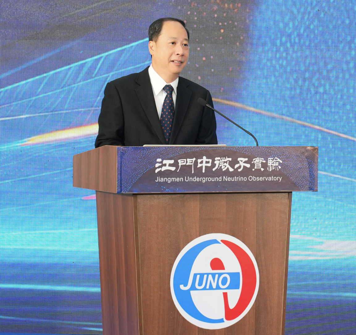 丁赤飚代表中國(guó)科學(xué)院對(duì)江門(mén)中微子實(shí)驗(yàn)裝置建設(shè)成功并取得重要科學(xué)成果表示祝賀。他表示,江門(mén)中微子實(shí)驗(yàn)作為國(guó)際上首個(gè)建成的新一代超大規(guī)模、超高精度的中微子實(shí)驗(yàn)裝置,是一項(xiàng)匯聚全球智慧的大型基礎(chǔ)科學(xué)研究國(guó)際合作項(xiàng)目,充分展現(xiàn)了我國(guó)在國(guó)際合作方面開(kāi)放、合作、共贏的理念。希望項(xiàng)目團(tuán)隊(duì)再接再厲,確保江門(mén)中微子實(shí)驗(yàn)高效平穩(wěn)運(yùn)行,提高運(yùn)行效能,與全球科學(xué)家緊密協(xié)作,不斷產(chǎn)出具有重大科學(xué)意義和國(guó)際影響力的原創(chuàng)性科技成果。