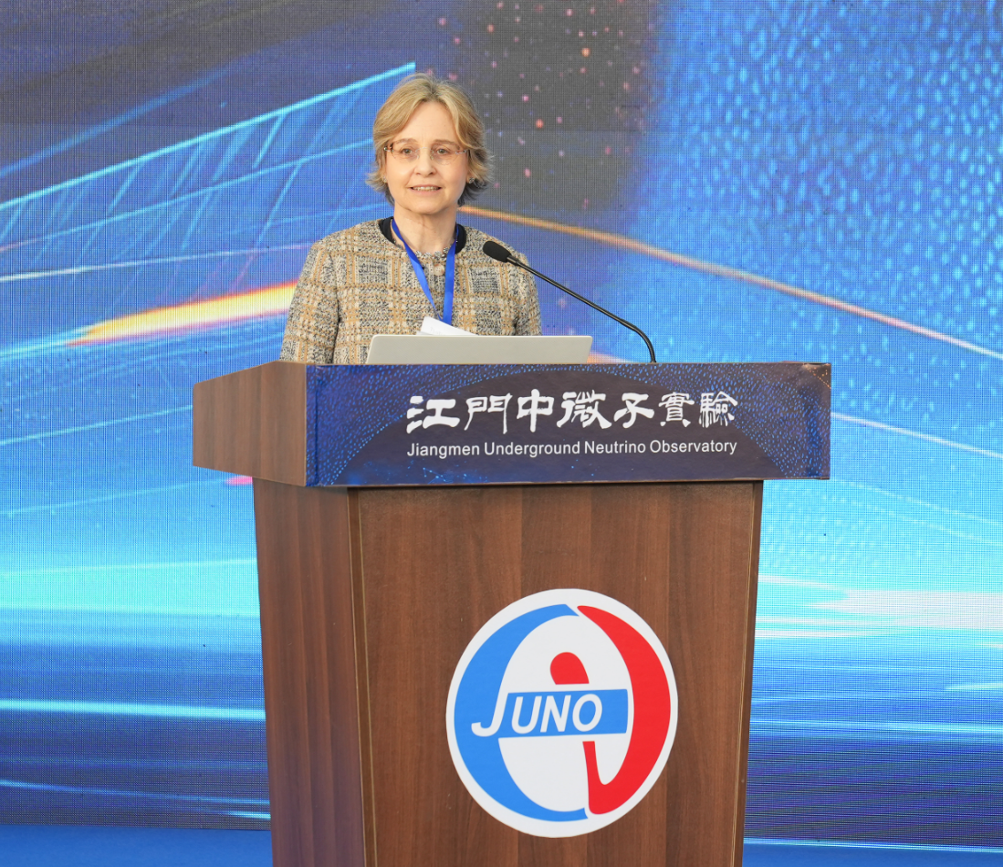意大利駐華大使館公使Cristina Carenza在致辭中表示,意大利是一個(gè)在科學(xué)與藝術(shù)、文化與創(chuàng)新中積淀而成的國(guó)家。我們深知基礎(chǔ)研究是對(duì)人類(lèi)未來(lái)的關(guān)鍵投資,中國(guó)科學(xué)院高能物理研究所(IHEP)與意大利國(guó)家核物理研究院(INFN)之間的科技合作意義重大。我們對(duì)成為江門(mén)中微子實(shí)驗(yàn)項(xiàng)目的重要合作伙伴倍感自豪,這項(xiàng)合作為兩國(guó)青年科研人員與技術(shù)人員的聯(lián)合培養(yǎng)、構(gòu)建未來(lái)的科研共同體奠定了堅(jiān)實(shí)基礎(chǔ)。我們相信,首個(gè)物理成果的發(fā)布只是“序章”,熱切期待江門(mén)中微子實(shí)驗(yàn)室未來(lái)綻放更多科研碩果,共同為人類(lèi)理解宇宙作出重要貢獻(xiàn)。