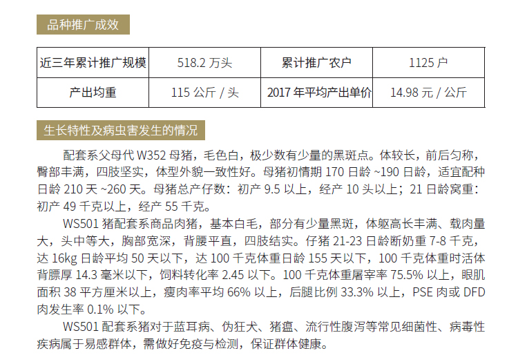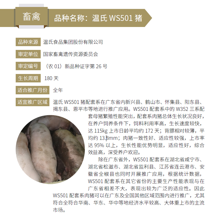 2019年農(nóng)業(yè)主導品種:溫氏WS501豬