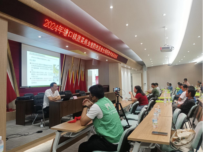 為加強食用農(nóng)產(chǎn)品源頭控制,強化“塘口優(yōu)品”行政區(qū)品牌農(nóng)產(chǎn)品質(zhì)量安全監(jiān)管,2024年4月2日下午,開平市農(nóng)業(yè)農(nóng)村局聯(lián)合塘口鎮(zhèn)舉辦開平市蔬菜病蟲害防控及安全用藥技術(shù)培訓(xùn)班。本次培訓(xùn)班邀請了廣東省農(nóng)業(yè)科學院植保保護研究所專家專門授課,并由開平市農(nóng)技推廣服務(wù)驛站進行現(xiàn)場直播,共現(xiàn)場培訓(xùn)蔬菜種植戶70人。培訓(xùn)班共分為三個環(huán)節(jié),一是由塘口鎮(zhèn)潘伯津副鎮(zhèn)長做開班講話,分析介紹塘口鎮(zhèn)蔬菜病蟲害防控現(xiàn)狀,明確要求各種植主體要規(guī)范種植、安全生產(chǎn);二是由廣東省農(nóng)業(yè)科學院植保保護研究所專家從葉菜病蟲害防控技術(shù)、豇豆病蟲害防控技術(shù)和安全用藥技術(shù)三方面進行講解授課;三是由開平市農(nóng)產(chǎn)品質(zhì)量監(jiān)督檢測站有關(guān)負責人員講解農(nóng)產(chǎn)品質(zhì)量安全抽樣及注意事項。 通過本次培訓(xùn),進一步促進提升塘口鎮(zhèn)蔬菜種植戶安全用藥和規(guī)范種植意識,提升塘口鎮(zhèn)蔬菜質(zhì)量安全水平,夯實行政區(qū)品牌農(nóng)產(chǎn)品源頭監(jiān)管,鞏固我市國家農(nóng)產(chǎn)品質(zhì)量安全縣創(chuàng)建成果。