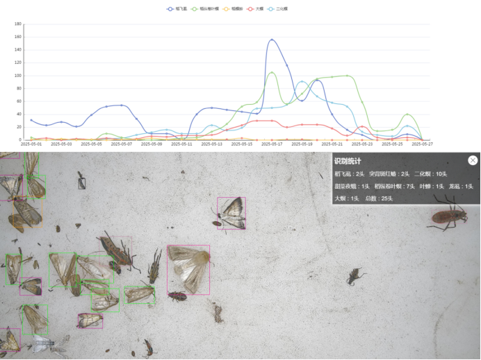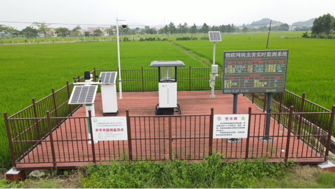 隨著農(nóng)業(yè)現(xiàn)代化進程的加快,農(nóng)作物病蟲害防治在農(nóng)業(yè)生產(chǎn)中的作用變得越來越重要。那怎樣提高農(nóng)藥利用率,保障糧食生產(chǎn)安全?又怎樣減少農(nóng)藥使用量,保障農(nóng)產(chǎn)品質(zhì)量安全呢?近年來,開平市大力建設(shè)農(nóng)作物病蟲害智能化監(jiān)測體系,推廣植保無人機統(tǒng)防統(tǒng)治技術(shù),“蟲臉識別”加“蟲口奪糧”,為“發(fā)展農(nóng)業(yè)新質(zhì)生產(chǎn)力”注入植保新力量。 科技賦能病蟲測報,“蟲臉識別”顯身手 “這是我們各個病蟲害智能監(jiān)測點的實時數(shù)據(jù),在電腦界面上就能清晰地展示出害蟲的照片、名稱、數(shù)量……”開平市農(nóng)業(yè)綜合服務(wù)中心植保員打開電腦上的病蟲害物聯(lián)網(wǎng)數(shù)據(jù)分析系統(tǒng),點擊相關(guān)選項后,就能清晰地看到一個圖文一體的畫面,其中不但有實時拍攝的害蟲照片,旁邊還附有害蟲種類和數(shù)量,十分精準(zhǔn)。這是我市積極推動農(nóng)作物病蟲害智能化監(jiān)測體系建設(shè)的成果之一。 病蟲測報是農(nóng)作物病蟲害防控的‘偵察兵’,想讓病蟲害防控更科學(xué),就必須提供更精準(zhǔn)的預(yù)測預(yù)報。當(dāng)下,刷臉解鎖、刷臉支付等人臉識別技術(shù)已進入大眾的生活,把這一項刷臉技術(shù)用在“蟲臉”上,就是我們開展農(nóng)作物病蟲害智能化監(jiān)測體系建設(shè)的有力探索?!跋x臉識別”是一種基于人工智能圖像識別和檢測技術(shù),讓系統(tǒng)自動識別照片中害蟲種類和數(shù)量的病蟲害測報手段,經(jīng)由拍攝、上傳、分析、反饋等環(huán)節(jié),植保人員和種田大戶可以快速了解農(nóng)田內(nèi)的病蟲害情況。 “蟲臉識別”2022年開始走入開平市的田間地頭。開平市農(nóng)業(yè)綜合服務(wù)中心通過統(tǒng)籌各級資金、申請上級項目、合理選點布點等措施著力推動全市農(nóng)作物病蟲害智能化監(jiān)測體系建設(shè)。截至2024年,全市建成農(nóng)作物病蟲害智能化監(jiān)測點7個、性誘監(jiān)測點13個,保有農(nóng)作物病蟲害智能化監(jiān)測設(shè)備48臺,包含智能性誘設(shè)備、智能燈誘設(shè)備、智能色誘設(shè)備、苗情監(jiān)測設(shè)備、墑情監(jiān)測設(shè)備、農(nóng)田小氣候監(jiān)測設(shè)備等,監(jiān)測預(yù)警體系進一步完善。通過智能化監(jiān)測和日常人工調(diào)查監(jiān)測有機結(jié)合,我市農(nóng)作物病蟲害短時預(yù)警準(zhǔn)確率達(dá)到95%以上,能夠指導(dǎo)不同鄉(xiāng)鎮(zhèn)開展針對性科學(xué)防治,農(nóng)作物病蟲監(jiān)測預(yù)警的能力和水平得到全面提升。 要守護水稻健康安全生長,除了要病蟲測得準(zhǔn),還要防得好。 智能防控病蟲為害,“蟲口奪糧”保豐收 我們走進長沙街道民強村的水稻田間,田里的水稻生長進入了幼穗分化期,一片生機盎然的景象,伴隨著旋翼聲響,一架植保無人機在飛手的操作下騰空而起,沿著稻田勻速前行,霧化農(nóng)藥從機身下的噴淋系統(tǒng)緩緩傾灑,均勻施向稻田,短短十幾分鐘,數(shù)畝稻田已經(jīng)完成施藥,整個防治過程快捷高效。 “今天天氣好,非常適合無人機作業(yè),趁著這個天氣噴灑農(nóng)藥,有助于提高農(nóng)藥利用率、提升防治效果?!敝脖<夹g(shù)員對記者說?!耙郧拔覀兌际遣捎萌斯ご蛩帲肆M用高、效率低且用藥量大,現(xiàn)在有了植保無人機,一天能完成200多畝的防治面積,農(nóng)藥用量也大大減少,確實能節(jié)本增效?!遍_平市供銷優(yōu)禾農(nóng)服公司負(fù)責(zé)人說道。 我市2025年早造水稻種植面積29.69萬畝,當(dāng)前早造水稻生長已普遍進入幼穗分化期,同時也是稻縱卷葉螟、稻飛虱、鉆蛀性螟蟲、紋枯病及稻瘟病等病蟲害防治的關(guān)鍵時期,植保無人機統(tǒng)防統(tǒng)治技術(shù)的應(yīng)用為病蟲防治上了“高效保險”,是實現(xiàn)“抓早治小”的關(guān)鍵手段。近年來,我市積極推廣病蟲害植保無人機統(tǒng)防統(tǒng)治技術(shù),通過購買服務(wù)、農(nóng)機補貼、服務(wù)補貼等方式鼓勵社會化服務(wù)主體積極參與病蟲害統(tǒng)防統(tǒng)治服務(wù)行動,預(yù)計今年年底統(tǒng)防統(tǒng)治覆蓋率將提升至60%左右,持續(xù)推動我市農(nóng)業(yè)種植智能化、高效化,打好“蟲口奪糧”保衛(wèi)戰(zhàn),護好群眾的“米袋子”。