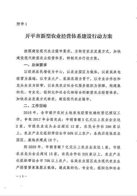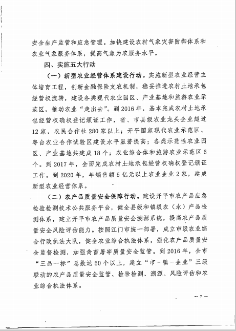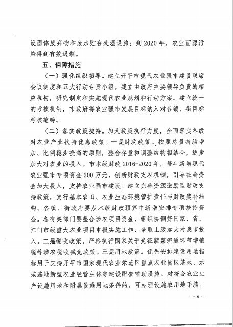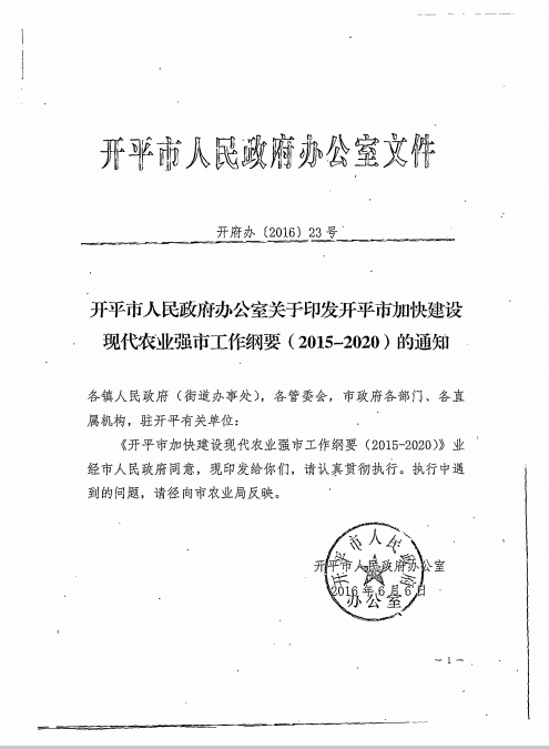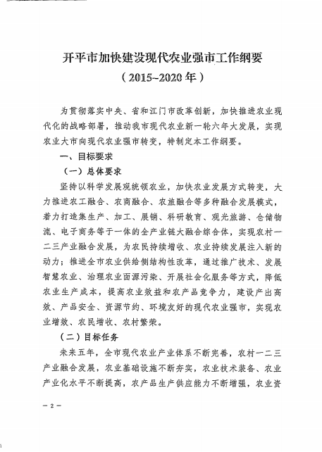 關(guān)于印發(fā)開(kāi)平市加快建設(shè)現(xiàn)代農(nóng)業(yè)強(qiáng)市工作綱要(2015-2020)的通知
