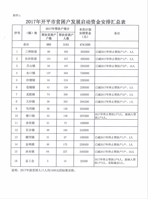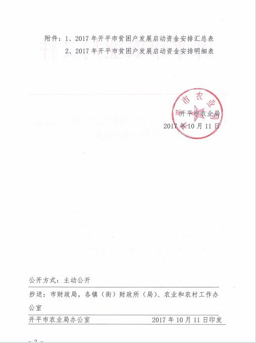 關于下達2017年開平市貧困戶發(fā)展啟動資金扶持計劃的通知