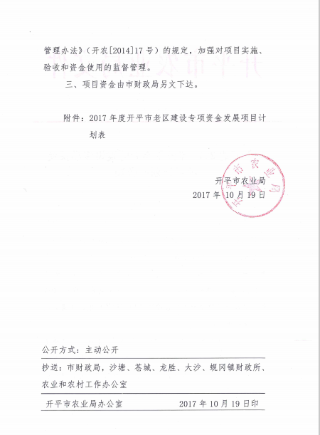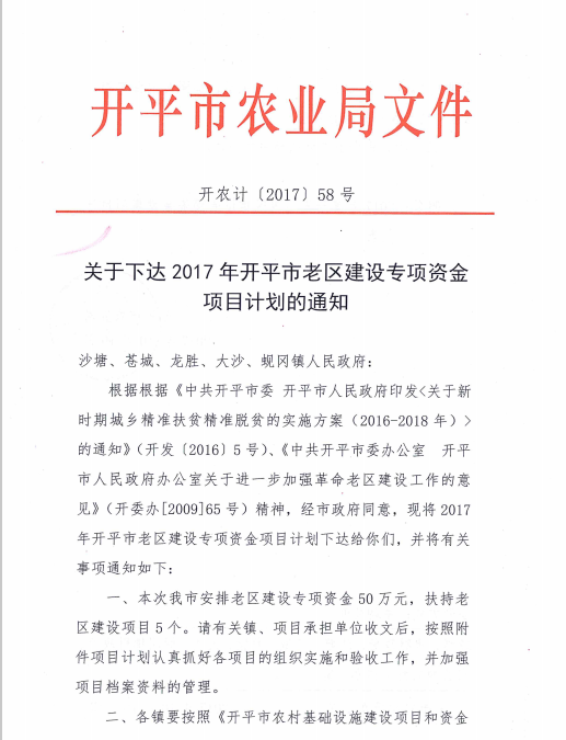 關(guān)于下達(dá)2017年開平市老區(qū)建設(shè)專項(xiàng)資金項(xiàng)目計(jì)劃的通知