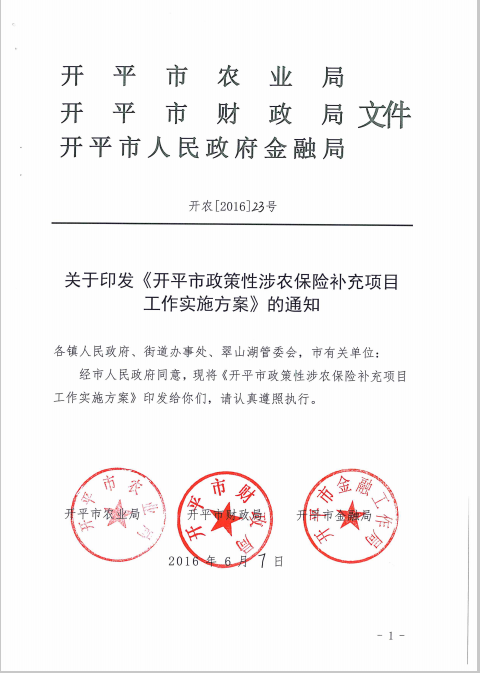 開平市政策性涉農(nóng)保險(xiǎn)補(bǔ)充項(xiàng)目 工作實(shí)施方案