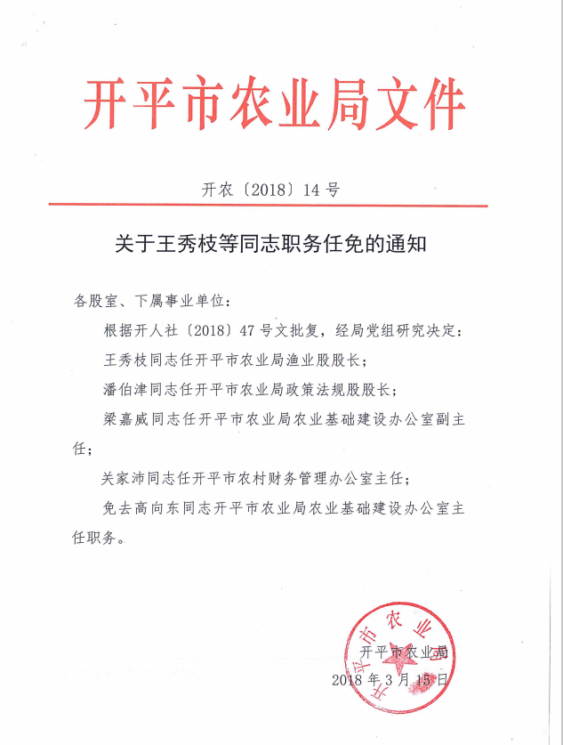 關(guān)于王秀枝等通知職務(wù)任免的通知