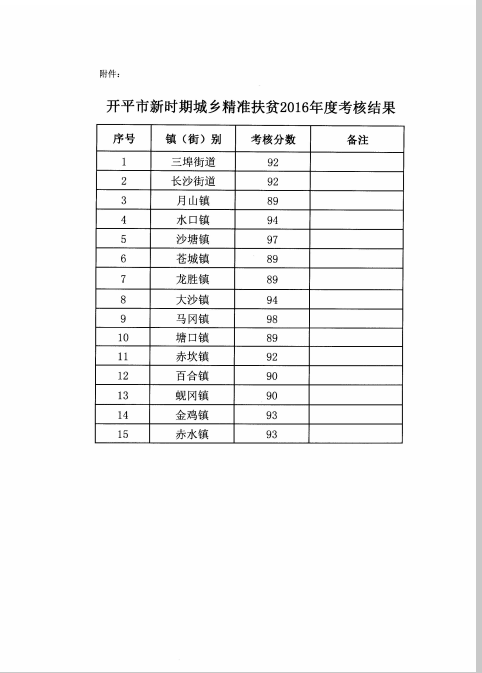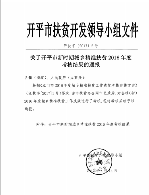 開扶字[2017]2號關于開平市新時期城鄉(xiāng)精準扶貧2016年度考核結(jié)果的通報