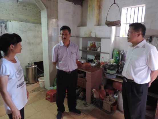 市政協(xié)秘書(shū)長(zhǎng)、辦公室主任肖章興和市政協(xié)副秘書(shū)長(zhǎng)、機(jī)關(guān)工會(huì)主席、辦公室副主任伍志平慰問(wèn)貧困戶(hù)梁創(chuàng)業(yè)一家