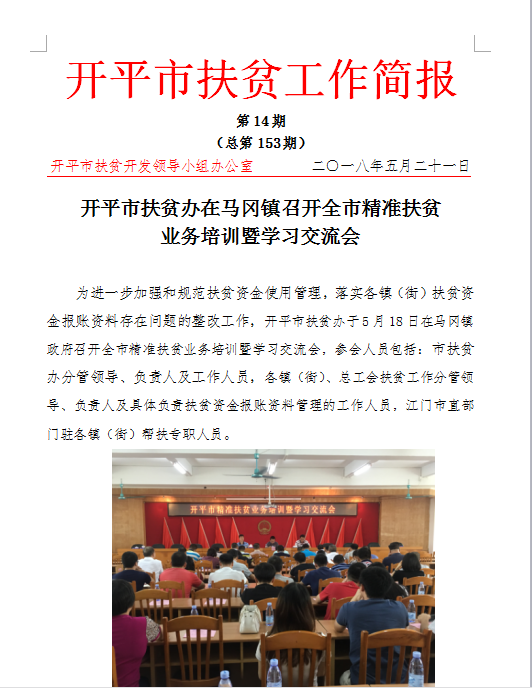 開平市扶貧工作簡報第14期(總第153期)
