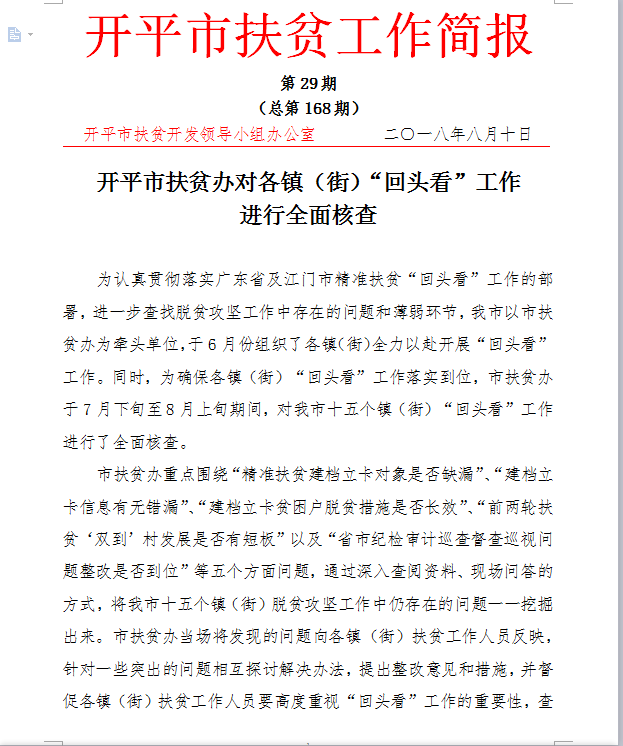 開(kāi)平市扶貧工作簡(jiǎn)報(bào)第29期(總第168期)
