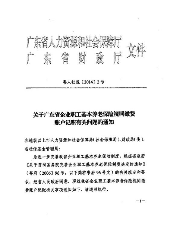 現(xiàn)將省人社廳、省財政廳《關(guān)于廣東省企業(yè)職工基本養(yǎng)老保險視同繳費(fèi)賬戶記賬有關(guān)問題的通知》(粵人社規(guī)〔2014〕2號)轉(zhuǎn)發(fā)給你們,請遵照執(zhí)行。