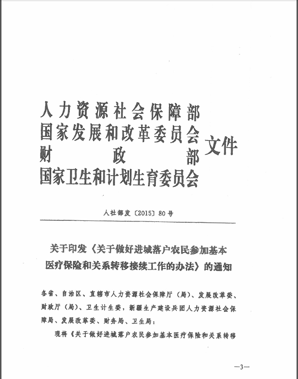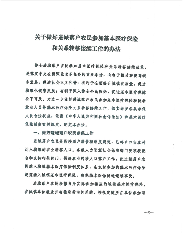 轉(zhuǎn)發(fā)《關(guān)于做好進(jìn)城落戶農(nóng)民參加基本醫(yī)療保險(xiǎn)和關(guān)系轉(zhuǎn)移接續(xù)工作的辦法》的通知