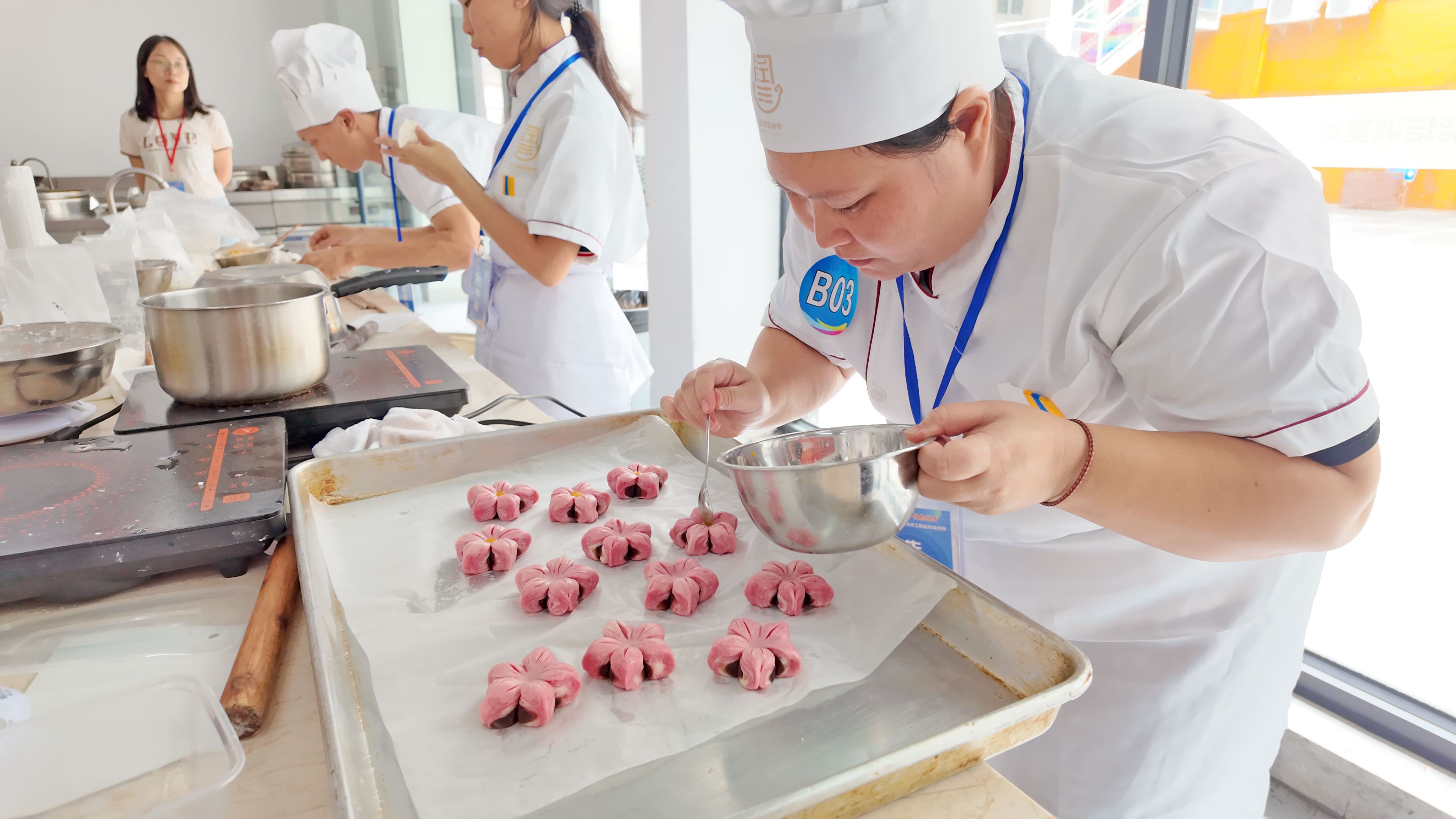 10月29日,由開平市人力資源和社會保障局、開平市總工會、開平市委人才辦聯(lián)合舉辦的2024年開平市“僑”奪天工職業(yè)技能競賽正式啟動,“粵菜師傅”中式面點(diǎn)(四級)項(xiàng)目作為本屆賽事第一個開賽項(xiàng)目在開平市省級粵菜師傅技能培訓(xùn)基地順利舉行。