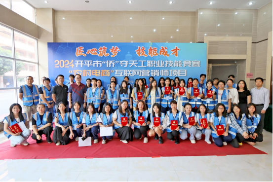 為滿足開平市農(nóng)文旅產(chǎn)業(yè)高質(zhì)量發(fā)展人才需求,助力開平市區(qū)域行政品牌“開平優(yōu)品”建設(shè)工作,深入挖掘開平本地直播人才,由開平市人力資源和社會保障局、開平市總工會、開平市委人才辦主辦、開平市吳漢良理工學(xué)校協(xié)辦的2024年開平市“僑”奪天工職業(yè)技能競賽“農(nóng)村電商”互聯(lián)網(wǎng)營銷師(三級)項(xiàng)目于11月6日舉行。賽事受到廣泛關(guān)注,各類人員踴躍報名,共有社會從業(yè)人員、來自院校的學(xué)生等50名選手參賽。
