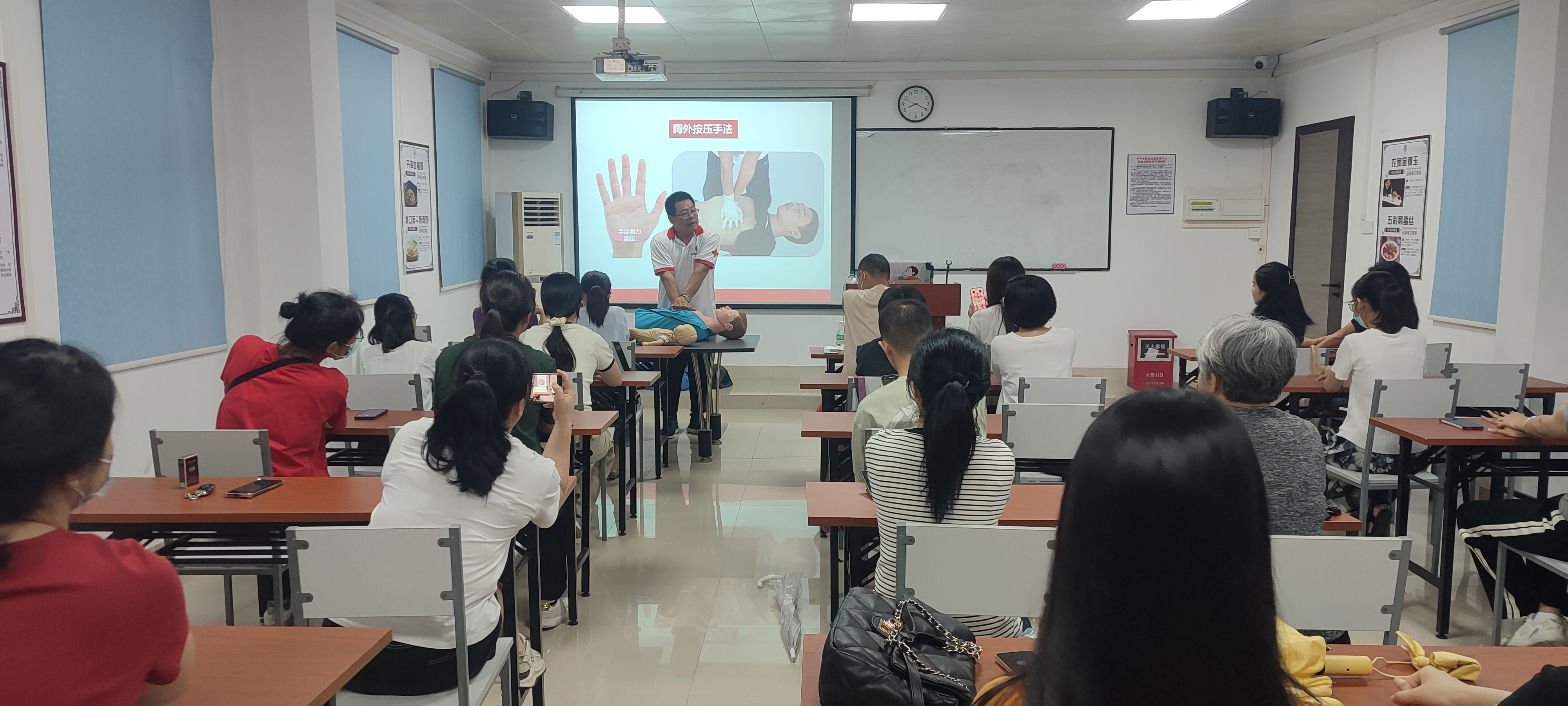 此次培訓(xùn)聚焦居家照護(hù)中的突發(fā)應(yīng)急場景,圍繞心肺復(fù)蘇操作流程、自動(dòng)體外除顫儀AED的使用方法、氣道異物梗阻急救海姆立克法、創(chuàng)傷止血包扎等核心技能展開,邀請專業(yè)講師通過情景模擬、實(shí)操演練等形式,幫助參訓(xùn)人員掌握科學(xué)規(guī)范的救護(hù)流程。培訓(xùn)特別增設(shè)居家意外傷害處理技能模塊,結(jié)合老年人和兒童常見意外案例,提升參訓(xùn)人員在緊急情況下的快速反應(yīng)與處置能力。