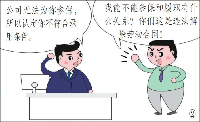 劉先生覺得,史某肯定是在社保問題上有“貓膩”導(dǎo)致公司無法為他參保,于是在請示公司總經(jīng)理后,以不符合錄用條件為由與尚在試用期內(nèi)的史某解除勞動合同。史某不同意,說錄用條件只能和履職相關(guān),而參保繳費(fèi)和履職無關(guān),公司不能因無法為自己參保就認(rèn)定自己不符合錄用條件;如果公司不想被告,要么讓自己留下,參保繳費(fèi)的事慢慢談,要么給點(diǎn)補(bǔ)償,自己可以痛快走人。聽了史某的條件,劉先生也不確定,公司解除勞動合同會不會真的違法。