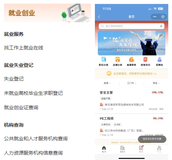 就業(yè)創(chuàng)業(yè)服務(wù)。可以線上瀏覽最新招聘信息,創(chuàng)建個(gè)人電子簡(jiǎn)歷并投遞,辦理就業(yè)失業(yè)登記等業(yè)務(wù),為您的就業(yè)創(chuàng)業(yè)路“保駕護(hù)航”。