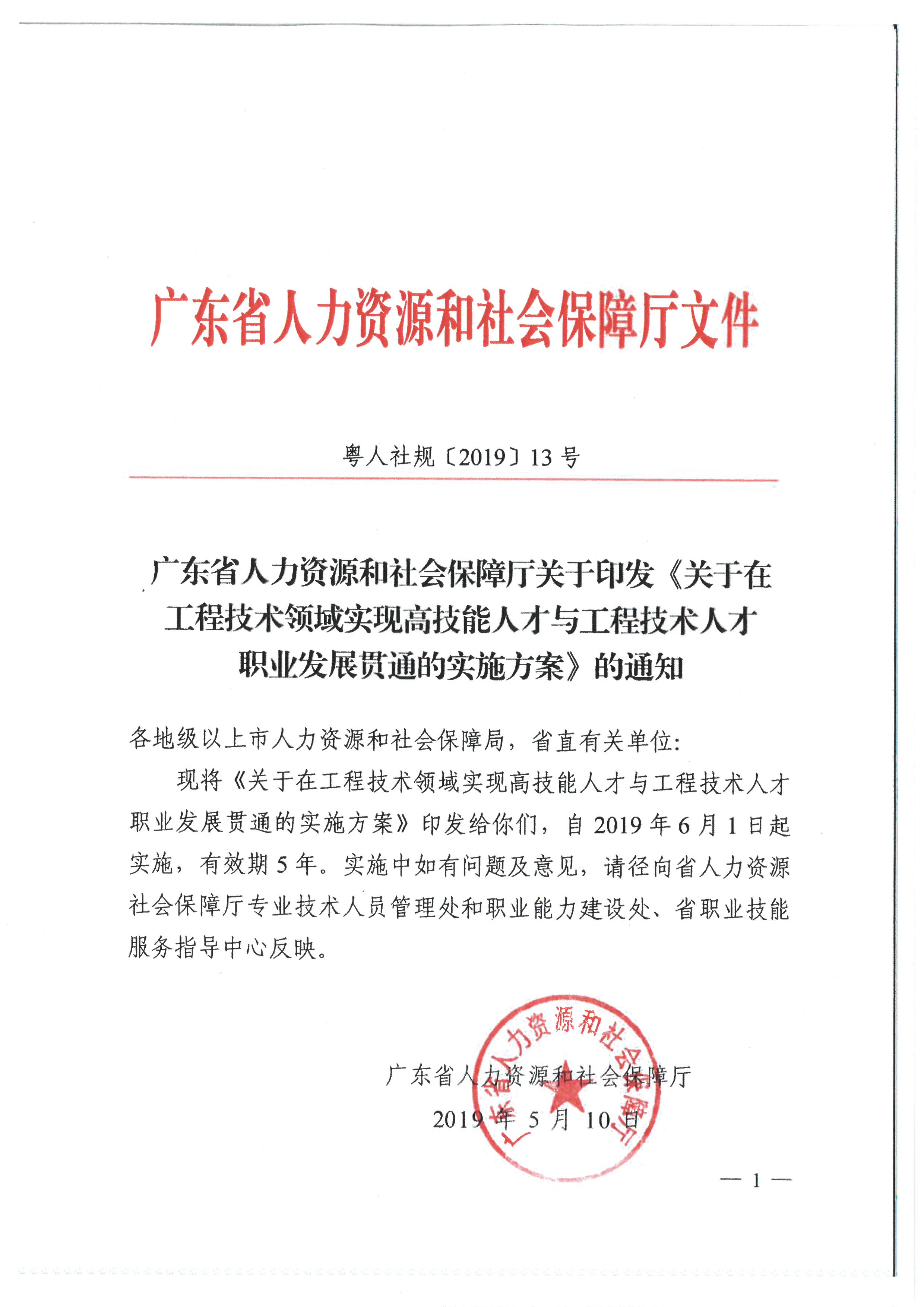 關(guān)于在工程技術(shù)領(lǐng)域?qū)崿F(xiàn)高技能人才與工程技術(shù)人才職業(yè)發(fā)展貫通的實施方案(粵人社規(guī)[2019] 13號)