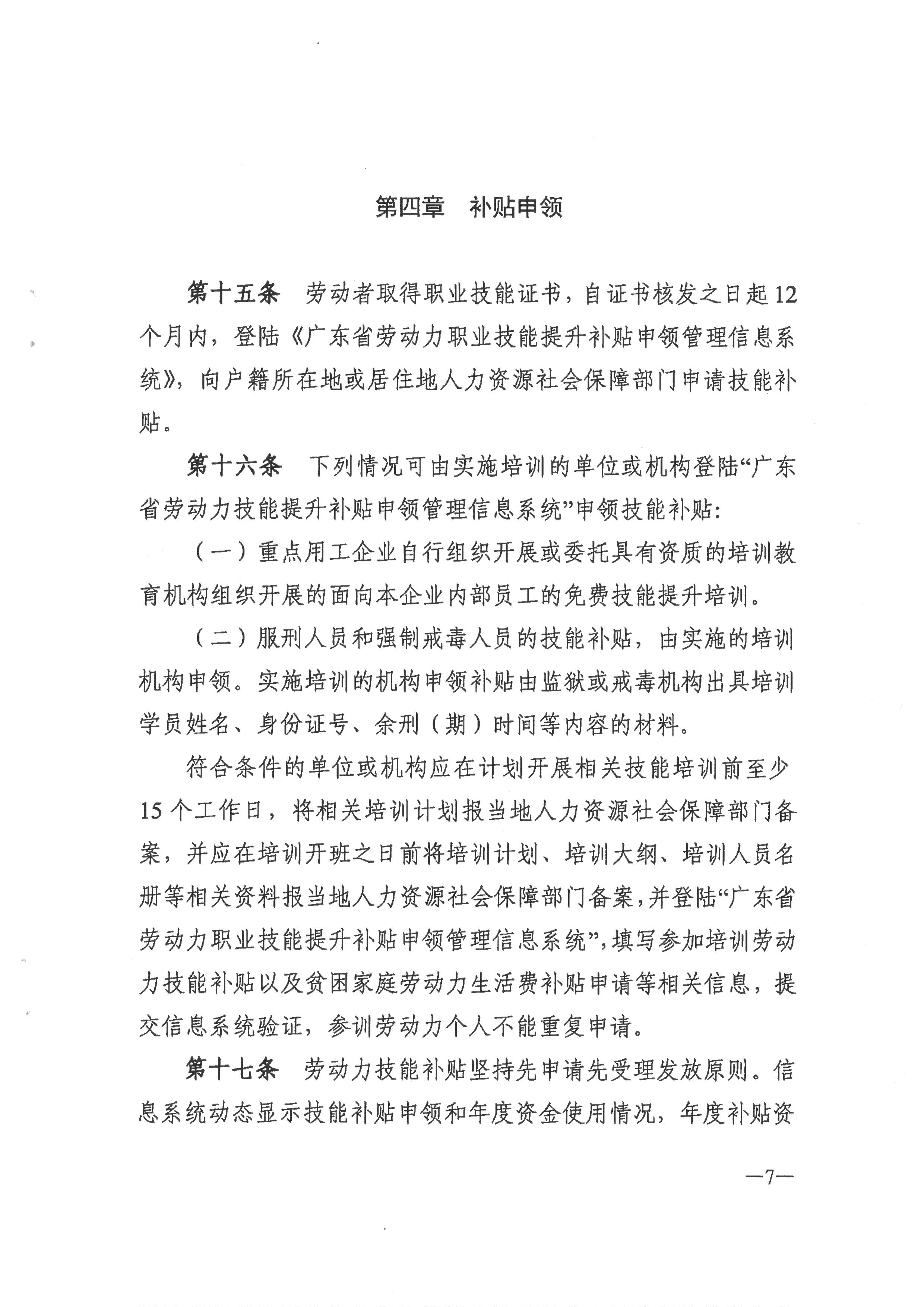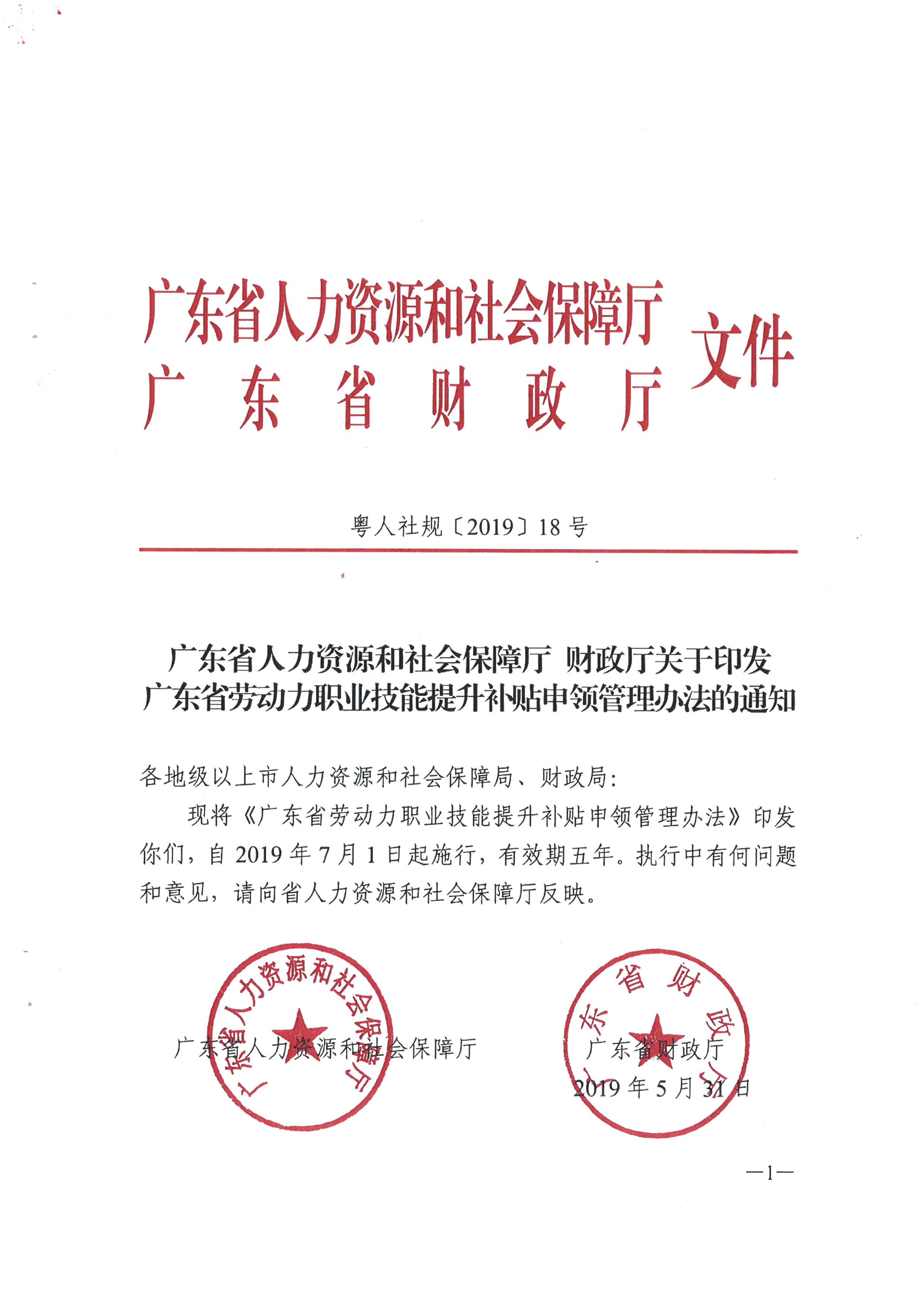 廣東省人力資源和社會保障廳 財政廳關(guān)于印發(fā)廣東省勞動力職業(yè)技能提升補貼申領(lǐng)管理辦法的通知(粵人社規(guī)[2019] 18號)