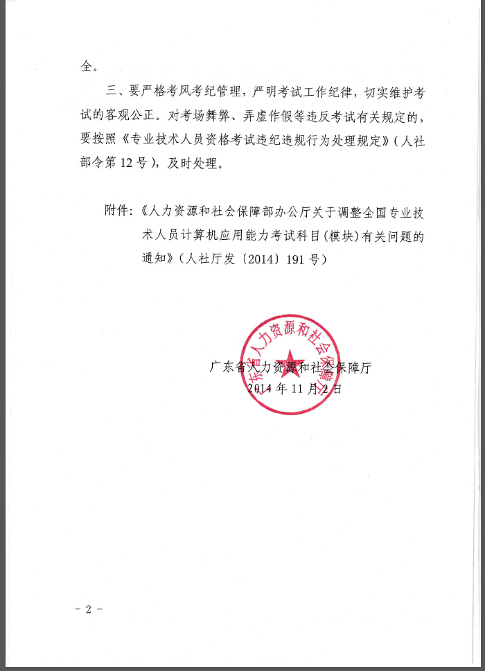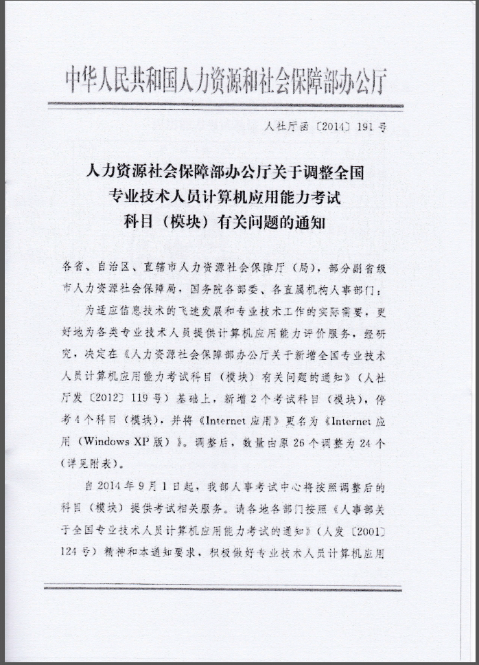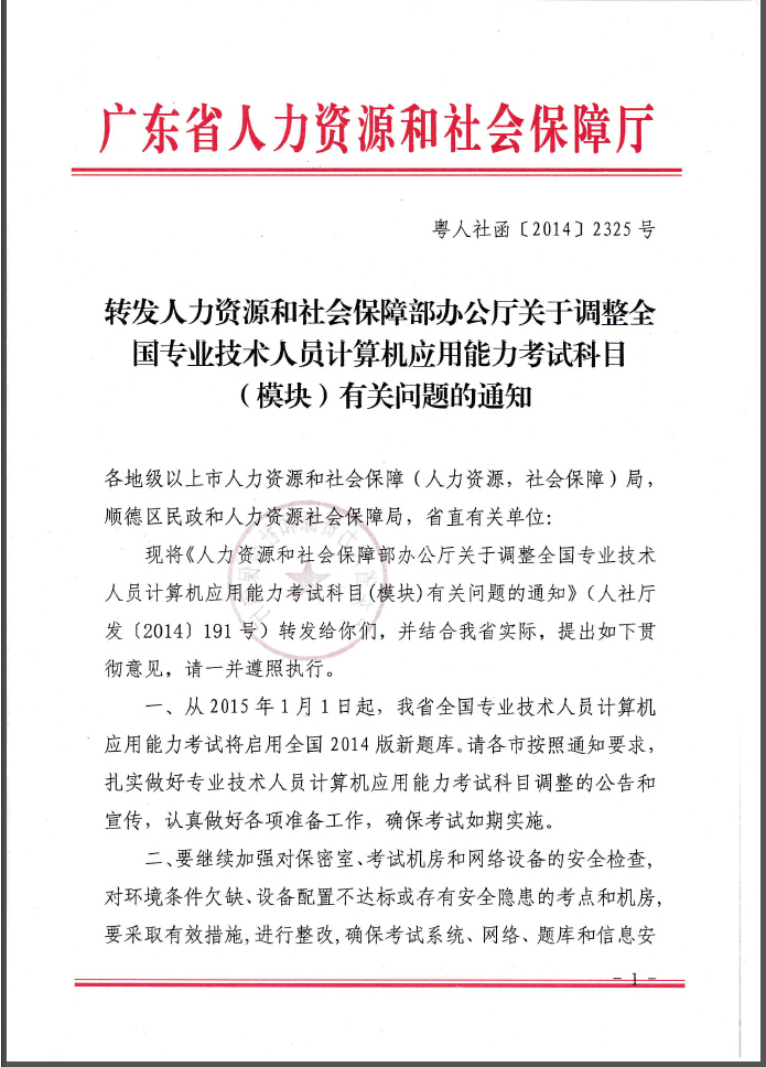 轉(zhuǎn)發(fā)人社部關(guān)于調(diào)整計(jì)算機(jī)能力考試科目的通知(粵人社函[2014]2325號