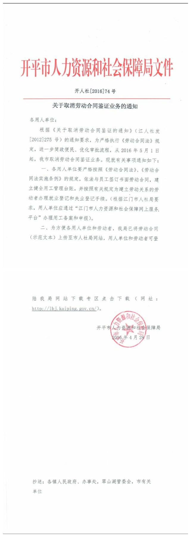 關(guān)于取消勞動合同鑒證業(yè)務(wù)的通知