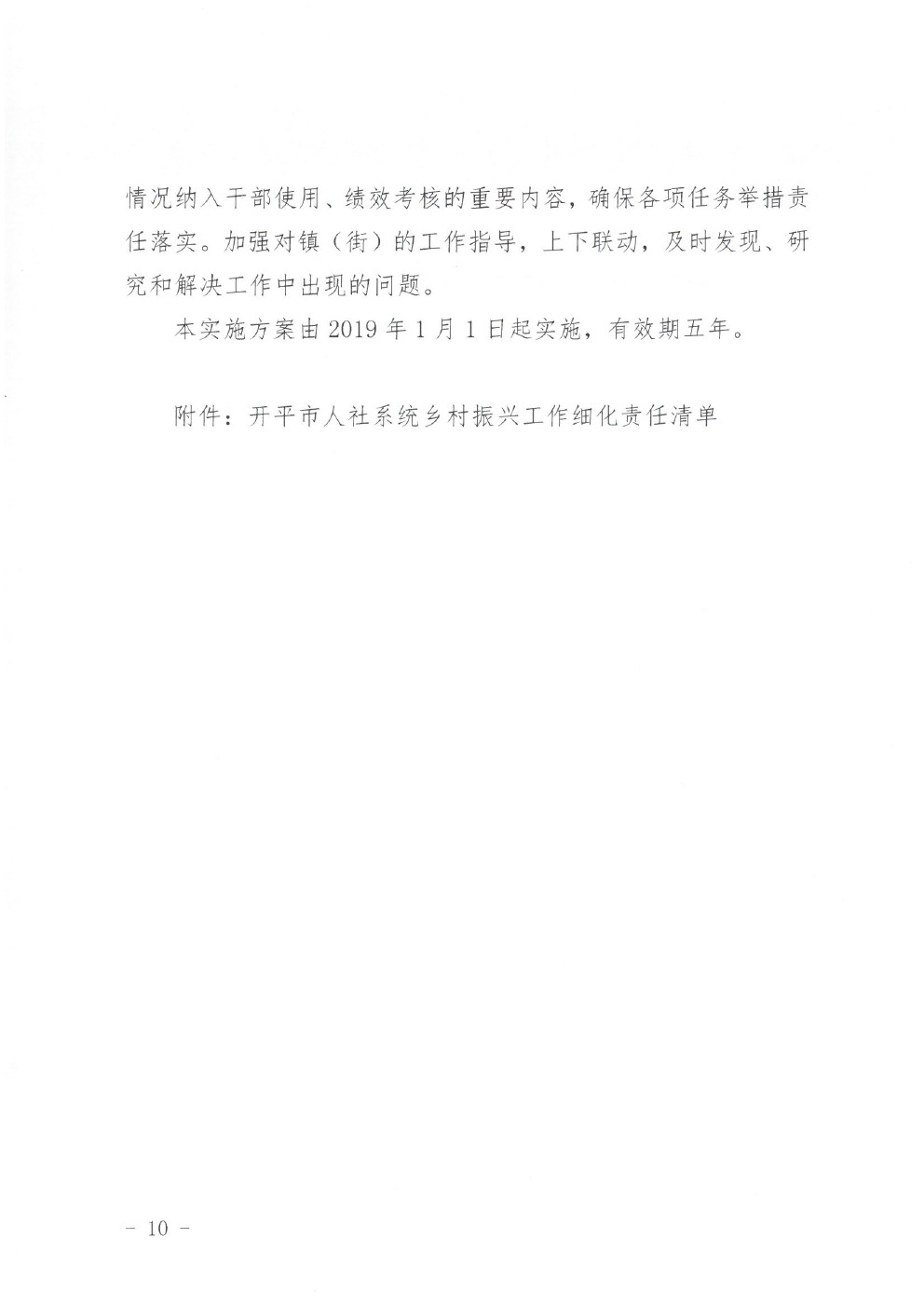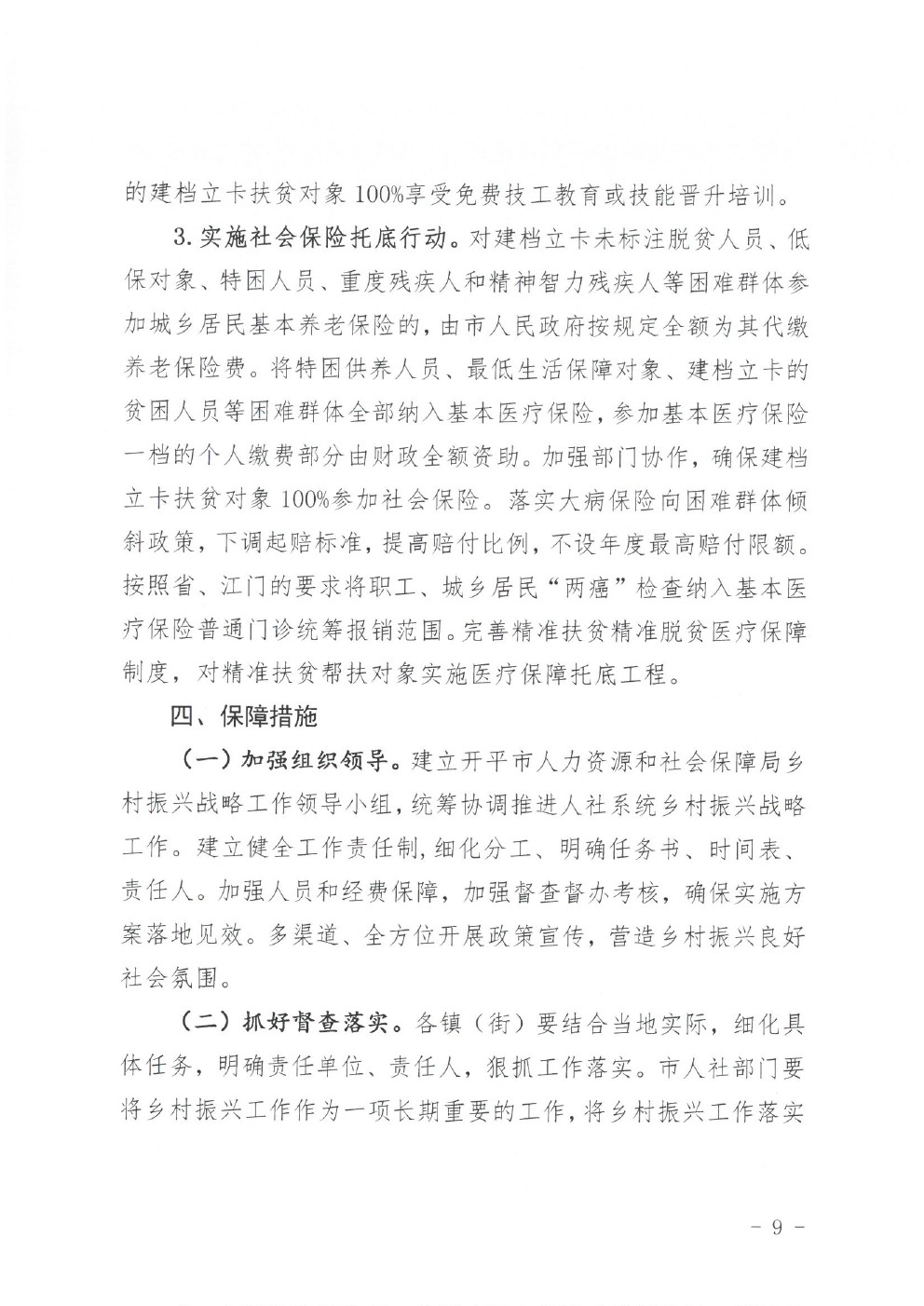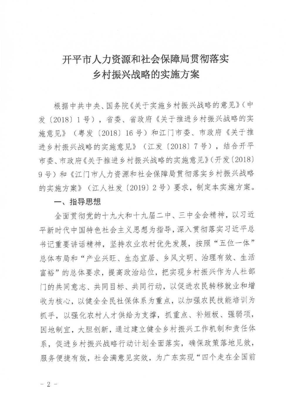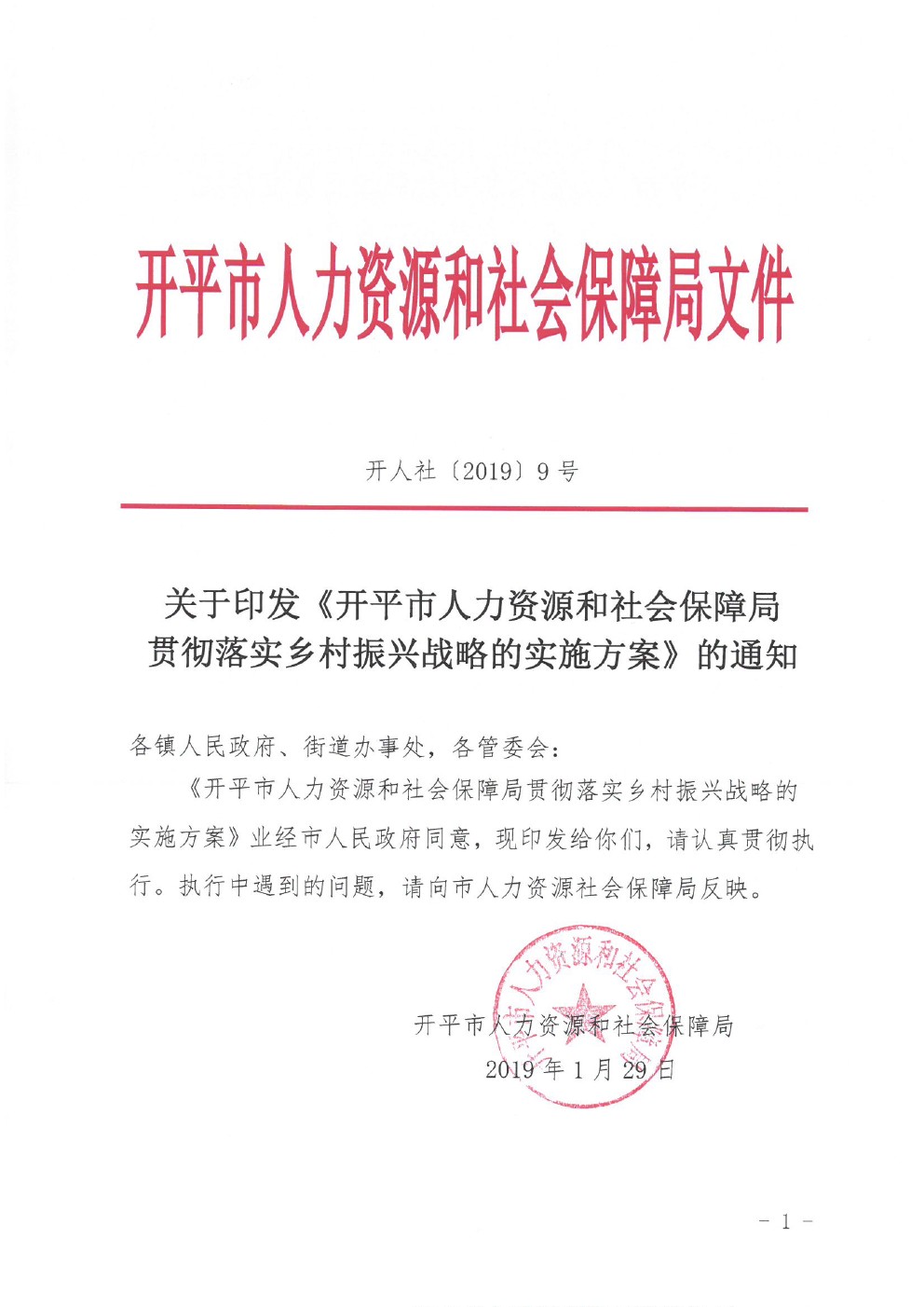 關于印發(fā)《開平市人力資源和社會保障局貫徹實施鄉(xiāng)村振興戰(zhàn)略實施方案》的通知(開人社【2019】9號)