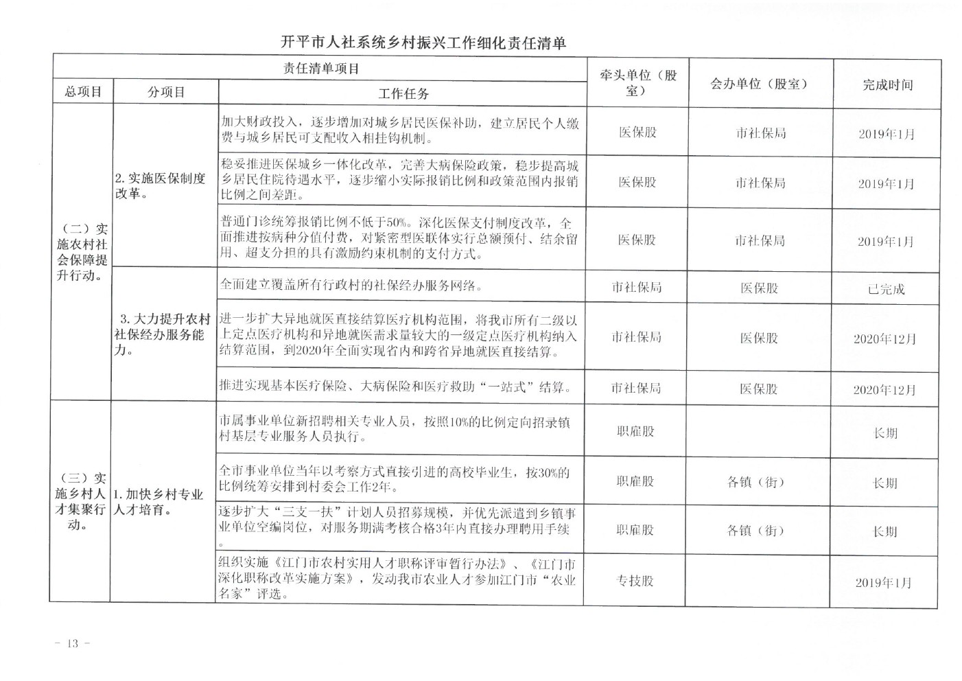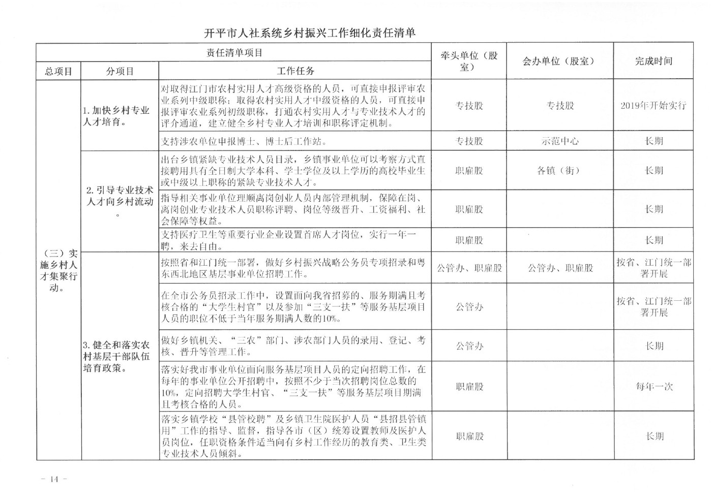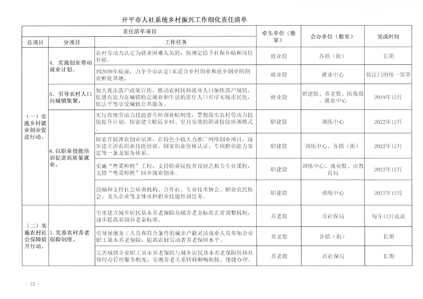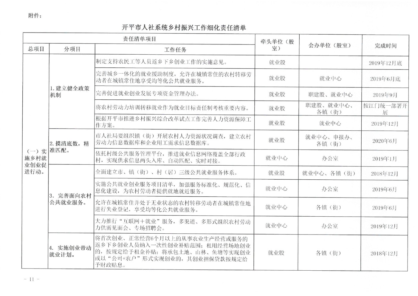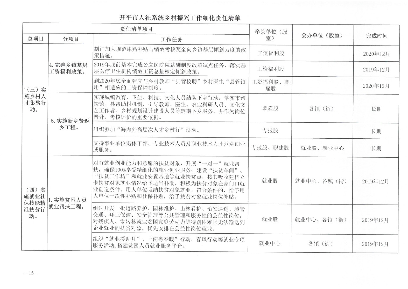 關于印發(fā)《開平市人力資源和社會保障局貫徹實施鄉(xiāng)村振興戰(zhàn)略實施方案》的通知(開人社【2019】9號)
