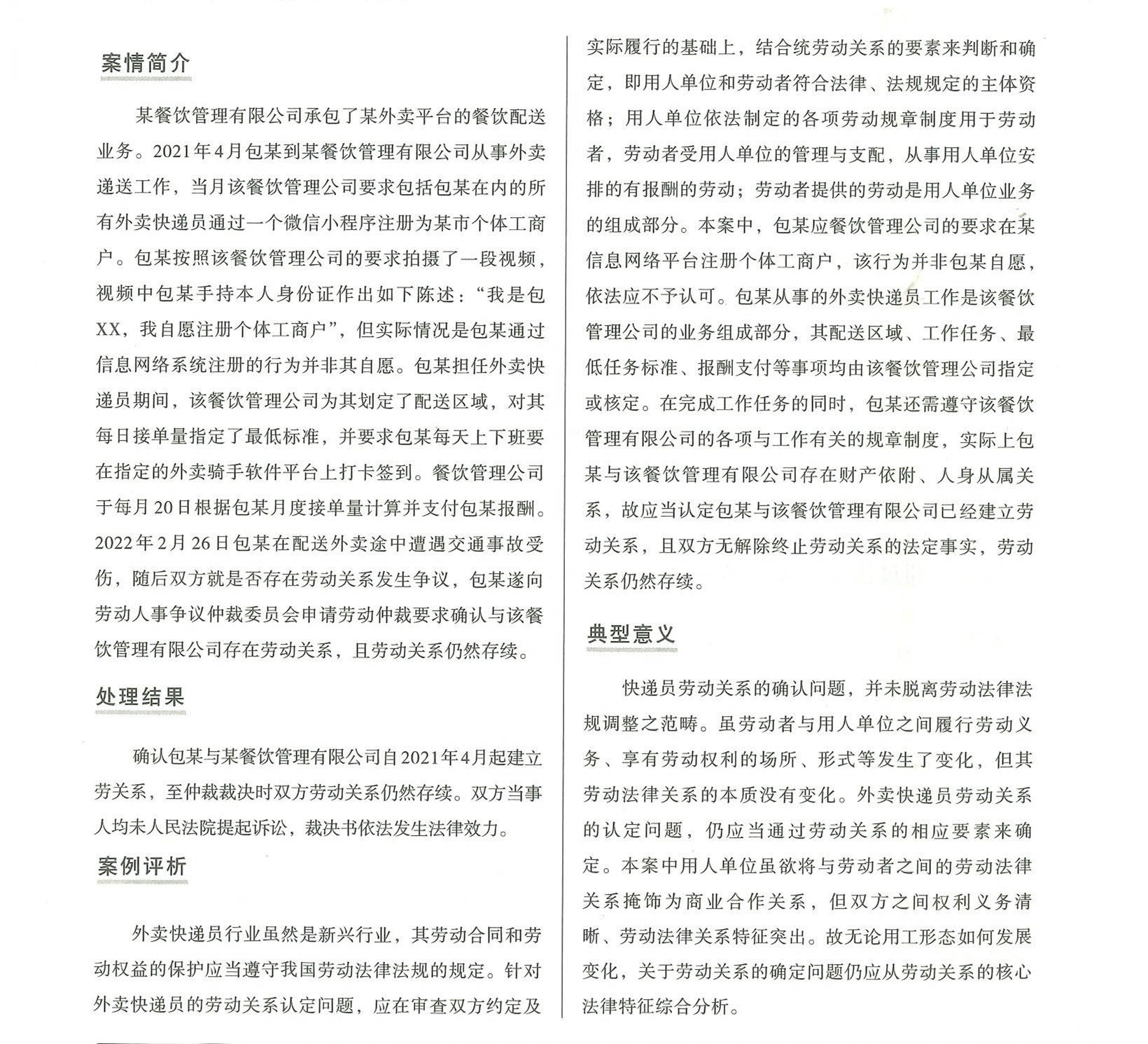 近年來(lái),平臺(tái)經(jīng)濟(jì)迅速發(fā)展,創(chuàng)造了大量就業(yè)機(jī)會(huì)。與此同時(shí),新就業(yè)形態(tài)勞動(dòng)者在維護(hù)自身合法權(quán)益是往往因?yàn)閯趧?dòng)關(guān)系問(wèn)題受阻。本期通過(guò)以案釋法一起來(lái)了解新就業(yè)形態(tài)的勞動(dòng)關(guān)系確認(rèn)問(wèn)題。