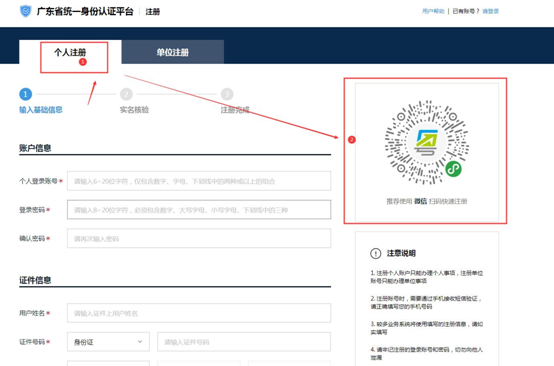 四、進入注冊界面,可以選擇個人注冊,也可以選擇單位注冊。