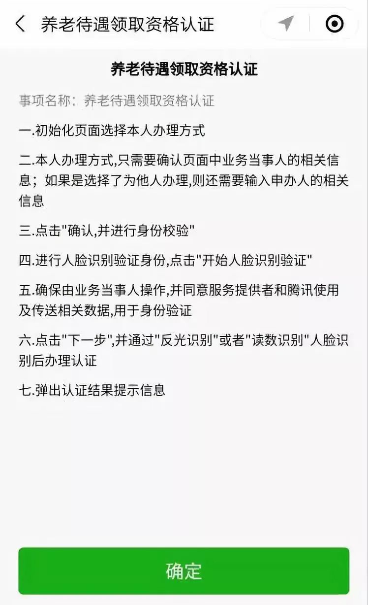 返回“社?!狈?wù)界面→選擇“養(yǎng)老保險(xiǎn)”→選擇“養(yǎng)老資格認(rèn)證”→點(diǎn)擊“城鎮(zhèn)職工社保”(或“城鄉(xiāng)居民”)→點(diǎn)擊“確定”進(jìn)入“確認(rèn)信息”界面。