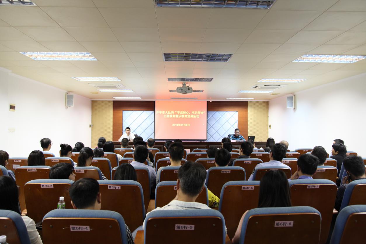 為扎實(shí)推進(jìn)開(kāi)平市“不忘初心、牢記使命”主題教育警示教育,切實(shí)引導(dǎo)黨員干部知敬畏、存戒懼、守底線,筑牢拒腐防變思想防線。11月8日下午,市人社局舉辦“不忘初心、牢記使命”主題教育警示教育宣講會(huì)。市人社局第一、第二黨支部、社保局現(xiàn)職黨支部黨員以及市殘聯(lián)相關(guān)領(lǐng)導(dǎo)同志共70多人參加宣講會(huì)。