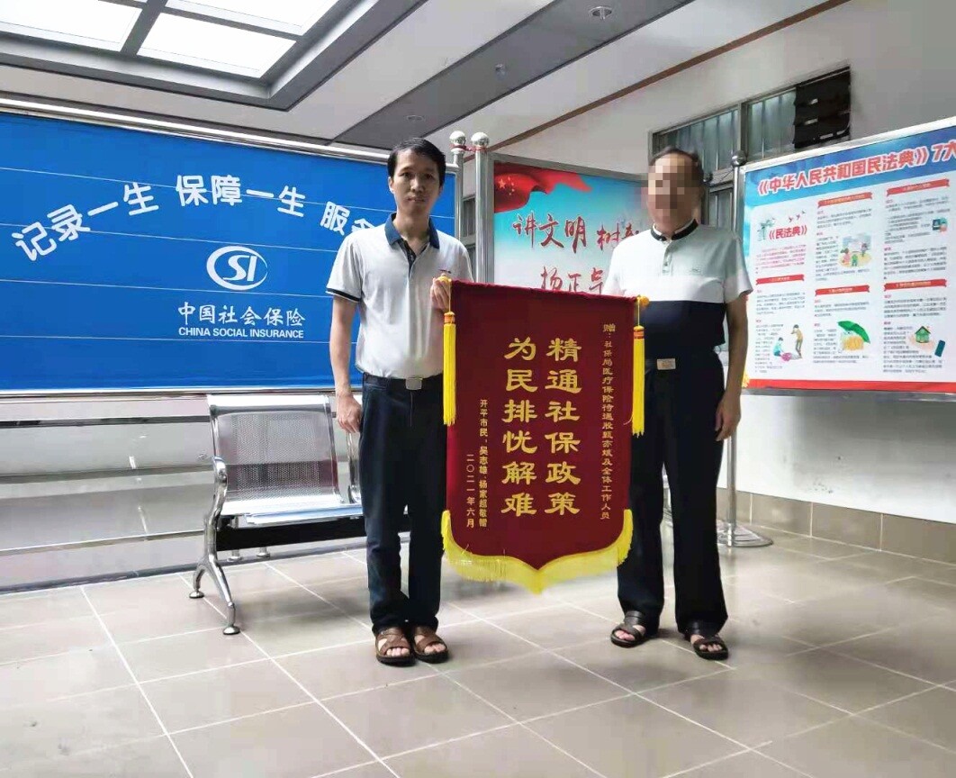 近日,開平市民吳先生和楊先生向開平市社保局送上一面“精通社保政策、為民排憂解難”的錦旗,對社保局工作人員盡職盡責(zé)、耐心細(xì)致的服務(wù)表示高度贊揚(yáng)和誠摯感謝。