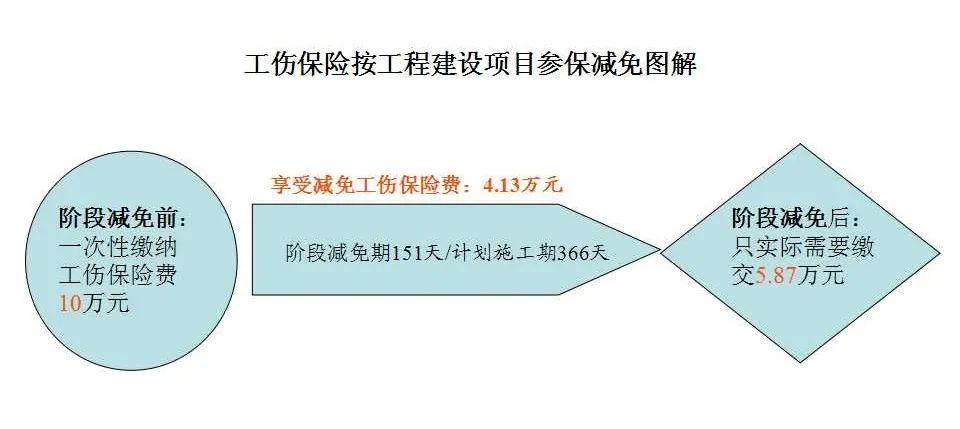五、減免政策執(zhí)行期為費(fèi)款所屬期 即在此期間補(bǔ)繳2月份之前的社保費(fèi)或躉繳減免政策期之后的社保費(fèi),均不屬減免政策范圍。 六、新開(kāi)工工程建設(shè)項(xiàng)目 2020年2月至6月新開(kāi)工的工程建設(shè)項(xiàng)目按國(guó)家規(guī)定進(jìn)行劃型并享受相應(yīng)的減免政策。 具體計(jì)算辦法:按照工程建設(shè)項(xiàng)目計(jì)劃施工所覆蓋的減免期占其計(jì)劃施工期的比例,折算減免工傷保險(xiǎn)費(fèi)。計(jì)劃施工期及起止日期依據(jù)備案的工程施工合同核定。由社保費(fèi)征收機(jī)構(gòu)在核定繳費(fèi)時(shí)直接予以減免,不需申請(qǐng)。 舉個(gè)例子:某建筑項(xiàng)目的施工總承包單位屬于中型企業(yè),該建筑工程項(xiàng)目從2020年2月1日計(jì)劃施工至2021年1月31日,按政策計(jì)算應(yīng)一次性繳納工傷保險(xiǎn)費(fèi)10萬(wàn)元。由于其屬于減免期內(nèi)新開(kāi)工建設(shè)項(xiàng)目,且施工總承包單位為中型企業(yè),可享受階段性免征工傷保險(xiǎn)費(fèi)政策,覆蓋的減免期為5個(gè)月共151天,則該項(xiàng)目可享受減免工傷保險(xiǎn)費(fèi):4.13萬(wàn)元=10萬(wàn)元×(階段減免期151天/計(jì)劃施工期366天)×100%,即只實(shí)際需繳5.87萬(wàn)元。