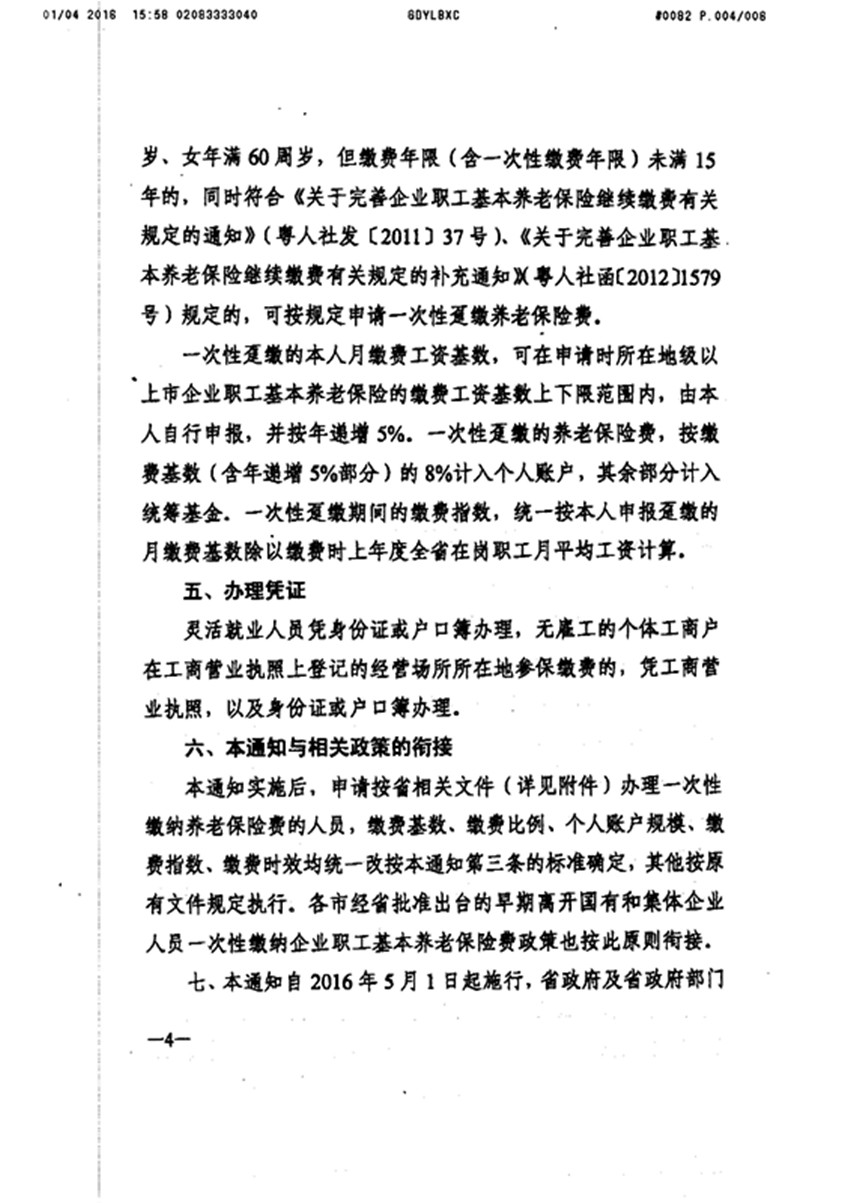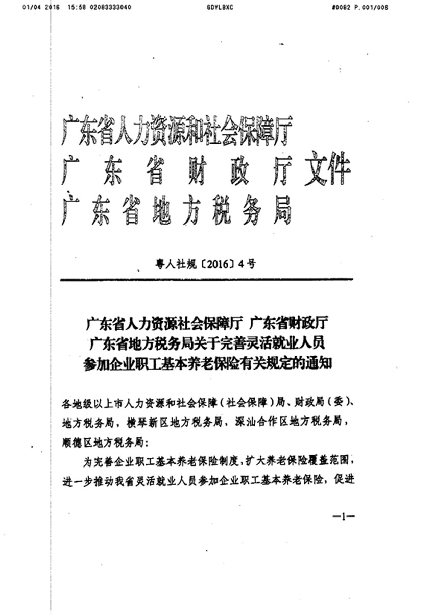 粵人社規(guī)[2016]4號(hào) 關(guān)于完善靈活就業(yè)人員參加企業(yè)職工基本養(yǎng)老保險(xiǎn)有關(guān)規(guī)定的通知