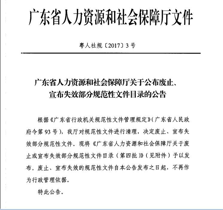 粵人社規(guī)[2017]3號 省人社廳關(guān)于公布廢止、宣布失效部分規(guī)范性文件目錄的公告
