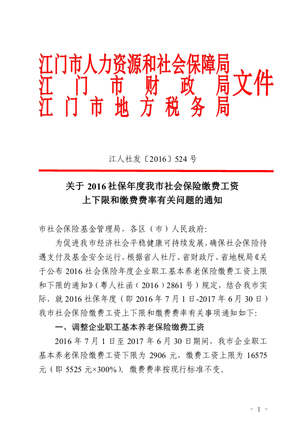 關(guān)于2016社保年度我市社會(huì)保險(xiǎn)繳費(fèi)工資上下限和繳費(fèi)費(fèi)率有關(guān)問題的通知