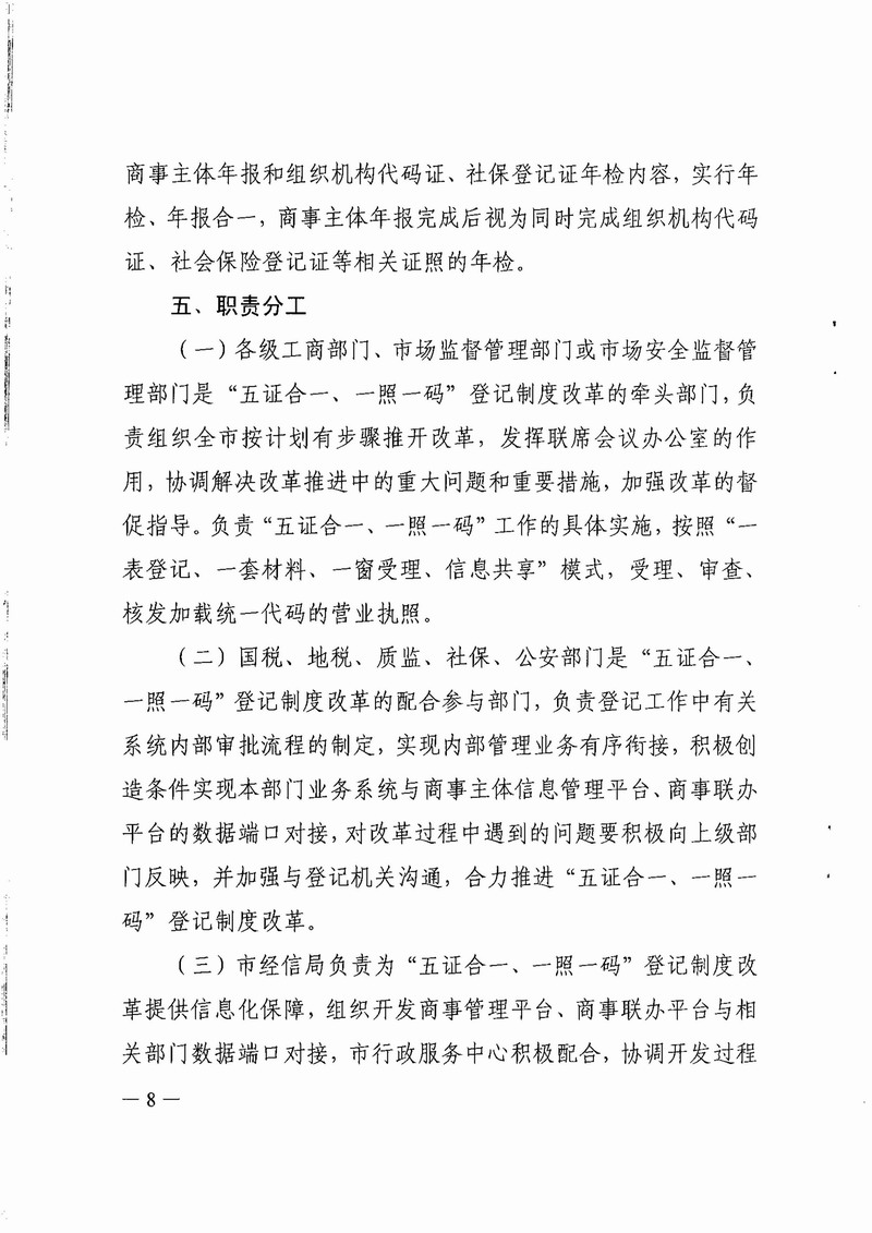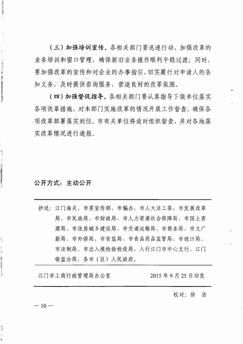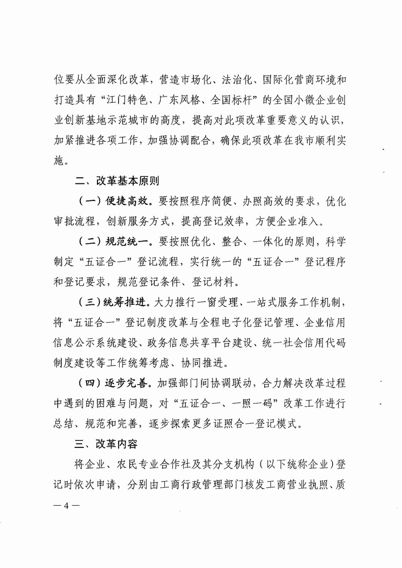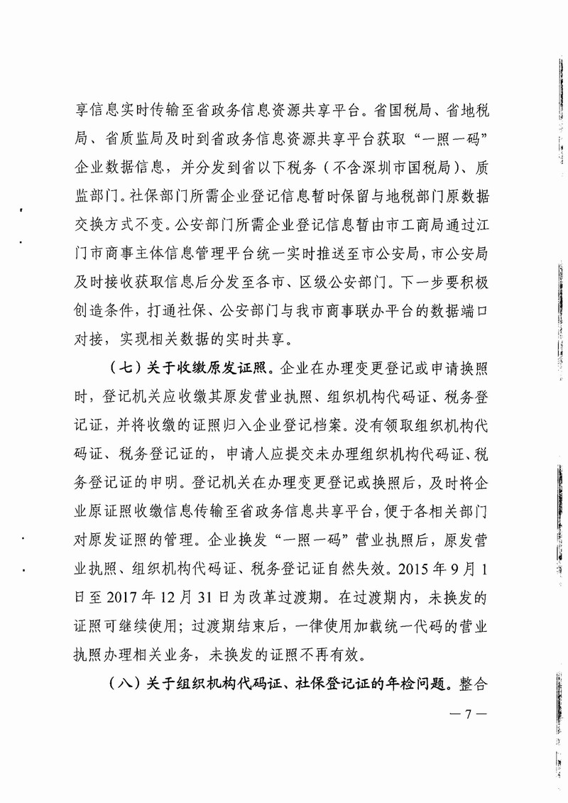 江門市工商局等八部門關(guān)于印發(fā)江門市全面推行“五證合一、一照一碼”登記制度改革的實(shí)施意見(jiàn)(試行)的通知