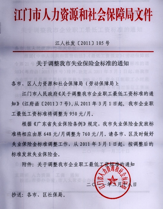 關(guān)于調(diào)整我市失業(yè)保險(xiǎn)金標(biāo)準(zhǔn)的通知