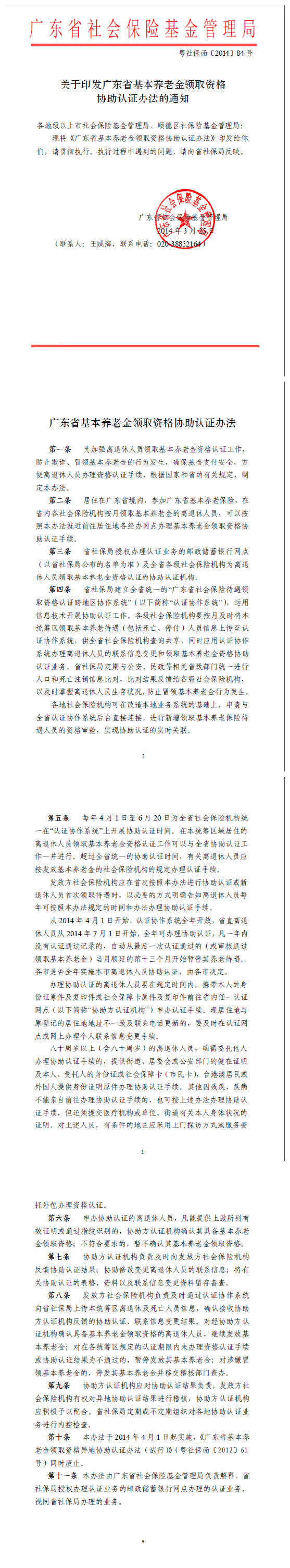 關于印發(fā)廣東省基本養(yǎng)老金領取資格協(xié)助認證辦法的通知