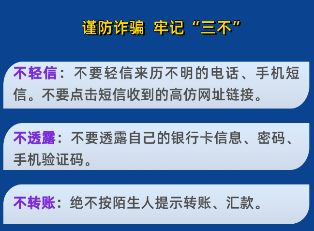 牢記不輕信、不透露、不轉(zhuǎn)賬