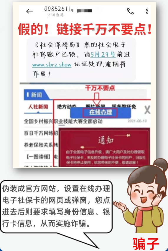 接到假冒社保工作人員的語音電話或者短信,千萬別透露自己的賬戶信息及身份信息,更不能按其提示進(jìn)行轉(zhuǎn)賬匯款等操作。