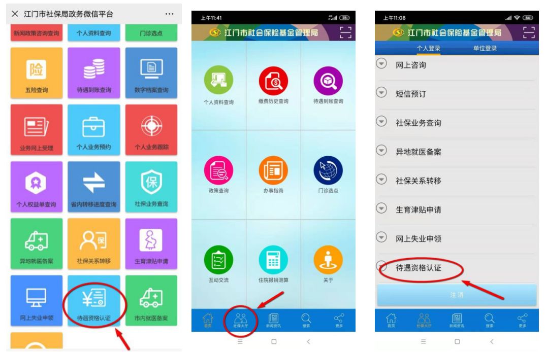 (一)“江門社?!蔽⑿殴娞枺ㄉ绫>W(wǎng)上服務(wù)大廳微信版)