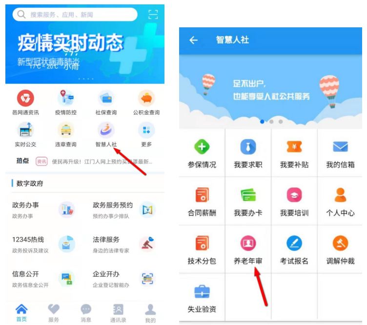 1.可辦理:企業(yè)職工養(yǎng)老保險(xiǎn)待遇資格認(rèn)證(即退休年審)、離退休養(yǎng)老待遇核定、死亡待遇申報(bào)(非因工死亡)業(yè)務(wù)。2.操作指引:進(jìn)入“江門社?!蔽⑿殴娞?點(diǎn)擊 “社保服務(wù)”-進(jìn)入“社保查詢預(yù)約平臺”-點(diǎn)擊“業(yè)務(wù)網(wǎng)上受理”-輸入姓名、身份證號碼、聯(lián)系電話、選擇業(yè)務(wù)類型并上傳相應(yīng)資料-點(diǎn)擊“提交”,工作人員審核后,將電話聯(lián)系。